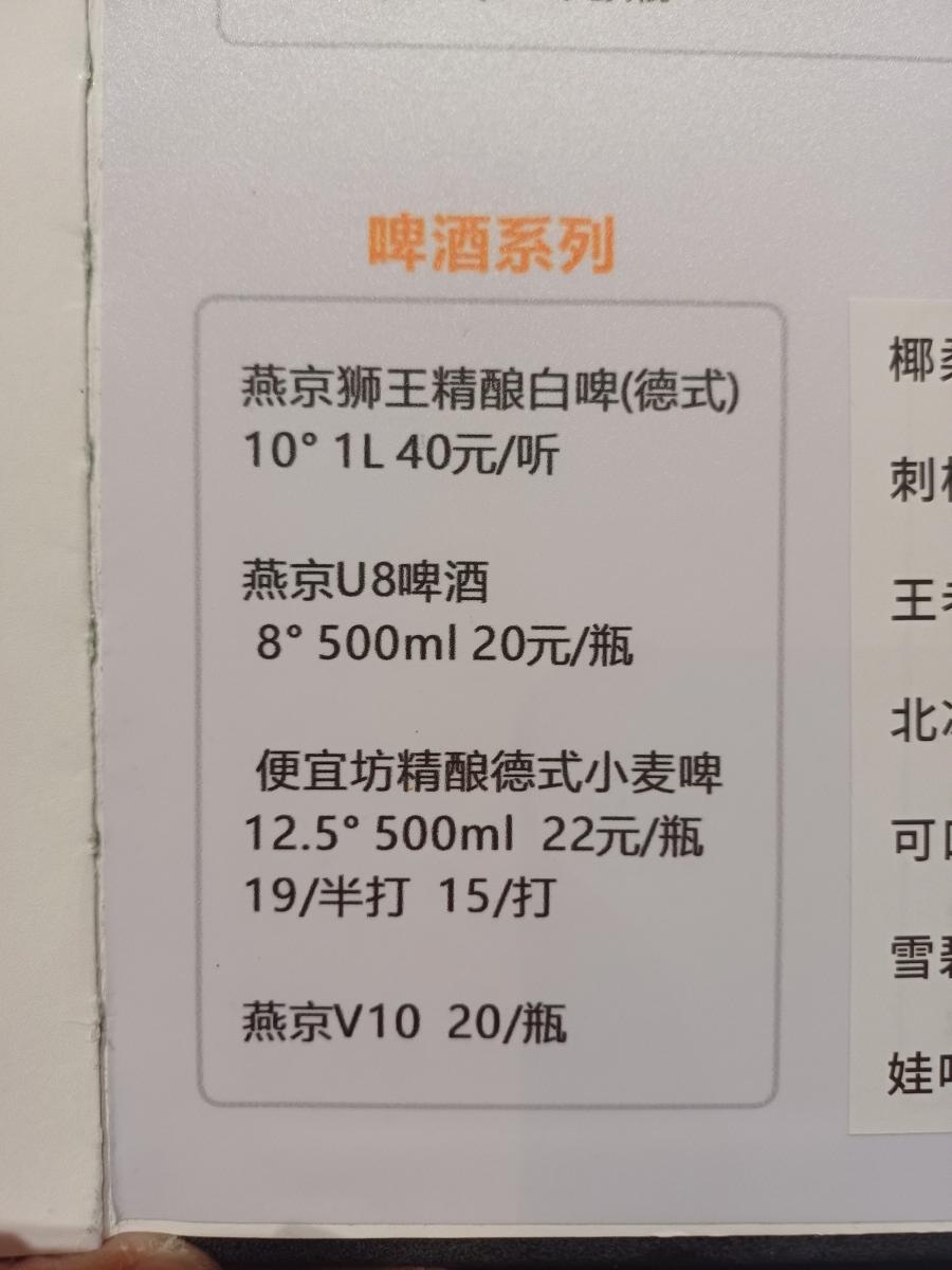 맥주가 먼저 나와서 살펴보니 1915년 중국 최조로 민족 자본이 설립한 최초의 양조장이며, 베이징의 최초의 양조장이기도 한 북경쌍합성오성(北京双合盛五星啤)에서 생산한 맥주였다. 마셔보니 밀맥주였는데 다소 맛이 밋밋했다.