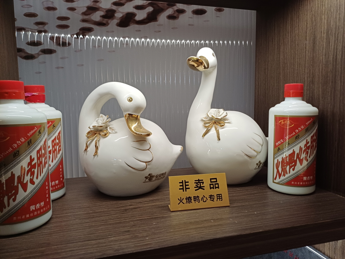 벽에 오리 장식품과 마오타이 술병이 있길래 자세히 살펴보니 마오타이가 아니었다. 모양만 마오타이다.