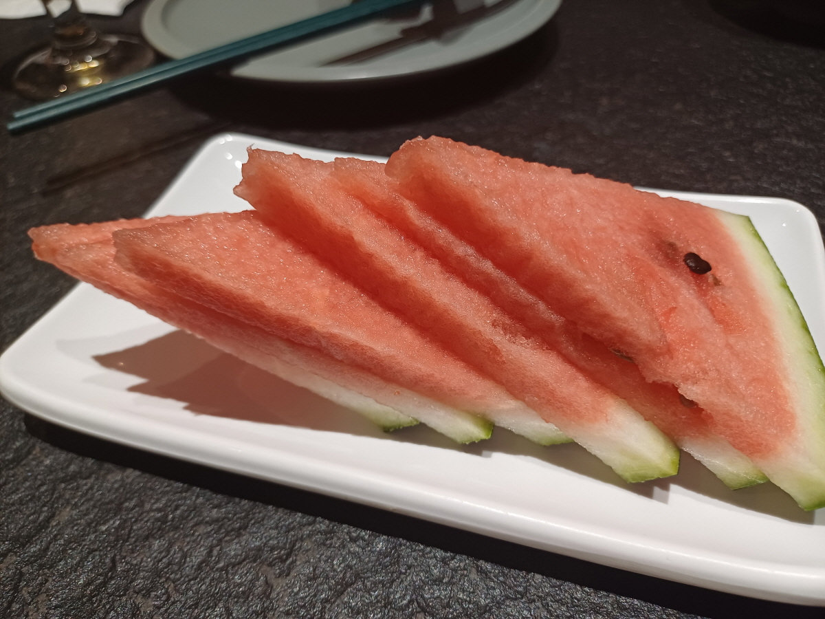 북경오리에 곁들여 먹는 쌈재료와 수박이 나온 뒤,