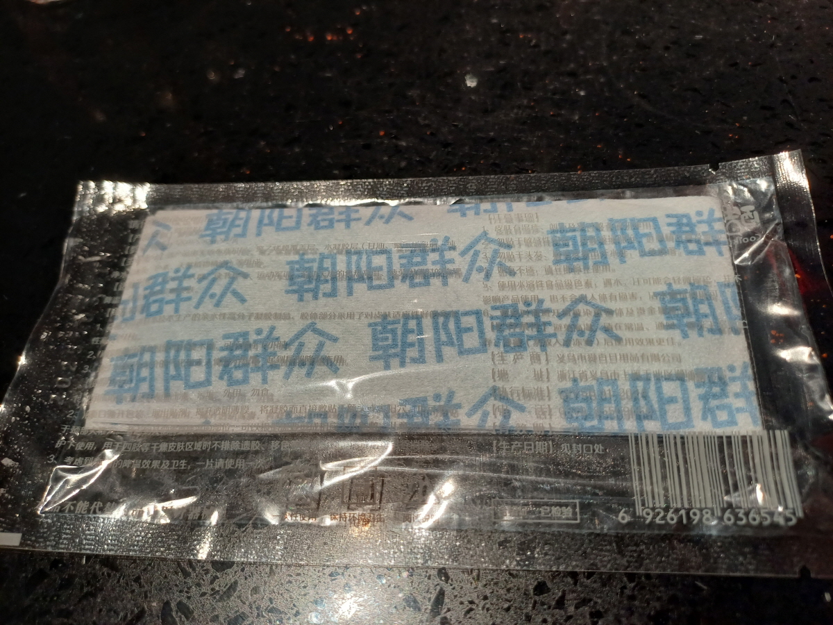 이 쿨링팩은 헌지우이치엔의 트레이드 마크인데, 양꼬치를 먹을 때 이마 부분이 뜨거워지는데 이 쿨링팩을 머리에 붙이면 정말 시원해진다. 아이디어가 정말 신박하다! 꼭 머리가 아니더라도 여기저기 몸에 붙이면 참 시원하다.