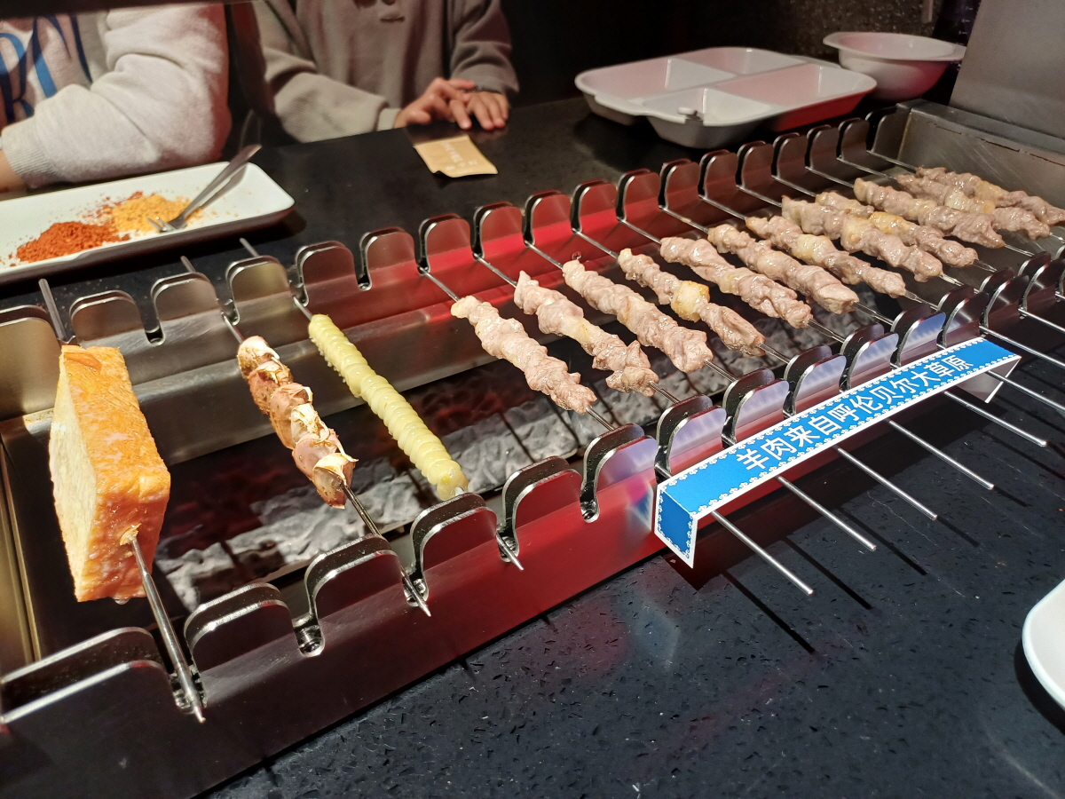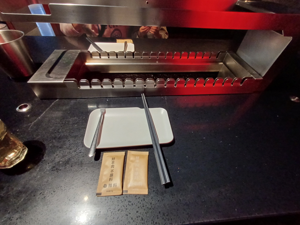 화로에 열은 나는데 불이 없길래 살펴보니, 무슨 쇠 판에서 열이 나는 구조로 보였다. 보통 양꼬치 집에서는 불이 들어오고 나오는 과정이 상당히 위험하고 번거롭기도 하고, 불이 죽으면 보완도 해줘야 하는데 이렇게 불이 없는 화로 덕분에 직원들도 편하고, 손님들도 편해진 느낌이었다.