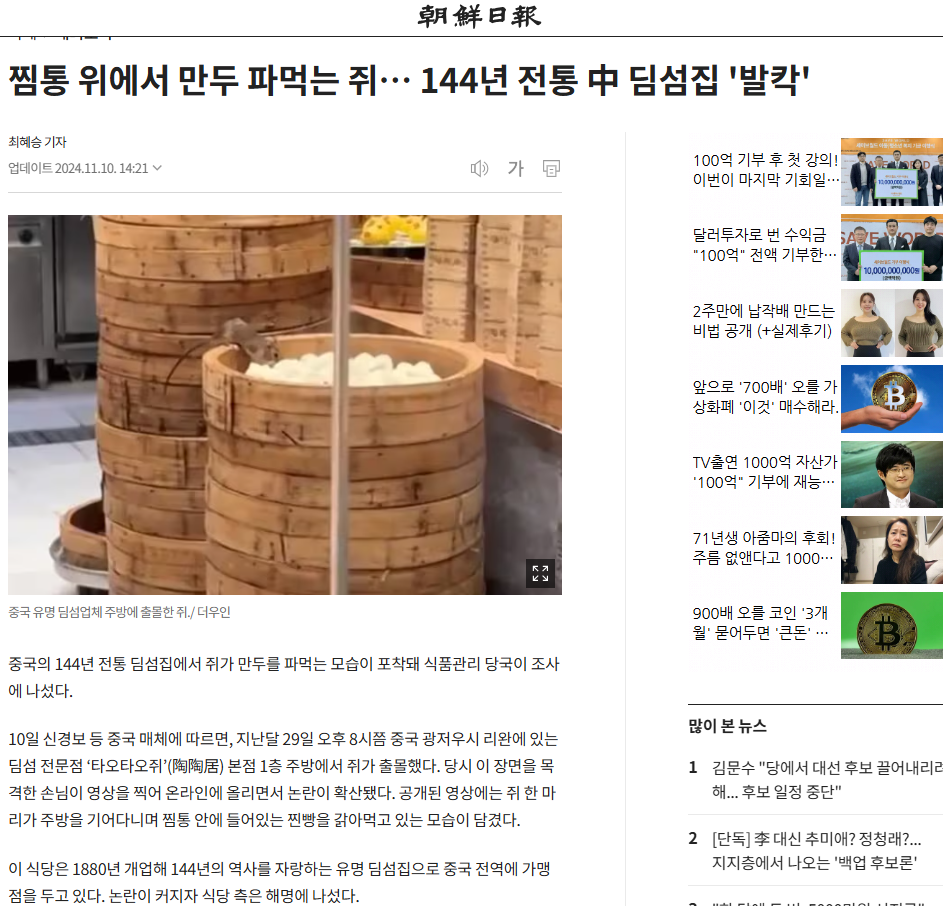 2024년 11월 타오타오쥐 본점 주방에서 쥐가 만두를 파먹는 영상이 공개되어 한동안 네티즌들의 뭇매를 맞기도 했던 곳인데, 설치류 방지 시설을 완비하고, 정부에서도 점검을 통해 개선 조치를 확인했다고 한다. 조금 꺼림칙 하지만 일이 터진 뒤 더 조심하겠거니...