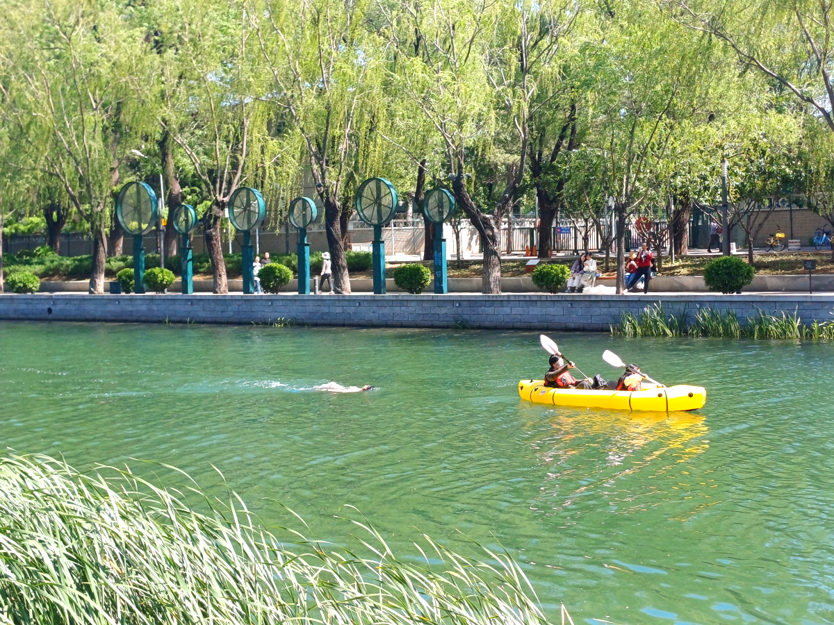 식사 후에 량마허(亮马河) 쪽으로 걸어와 소화도 시킬 켬 산책을 했다. 강에서 배를 타는 사람도 있고 낚시를 하는 사람도 있고 다들 여유를 즐기고 있었다.