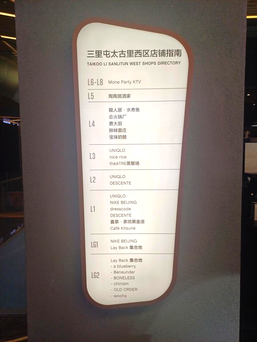 -중문 주소 : 北京市 朝阳区 工体北路 58号 太古里 西区 五层