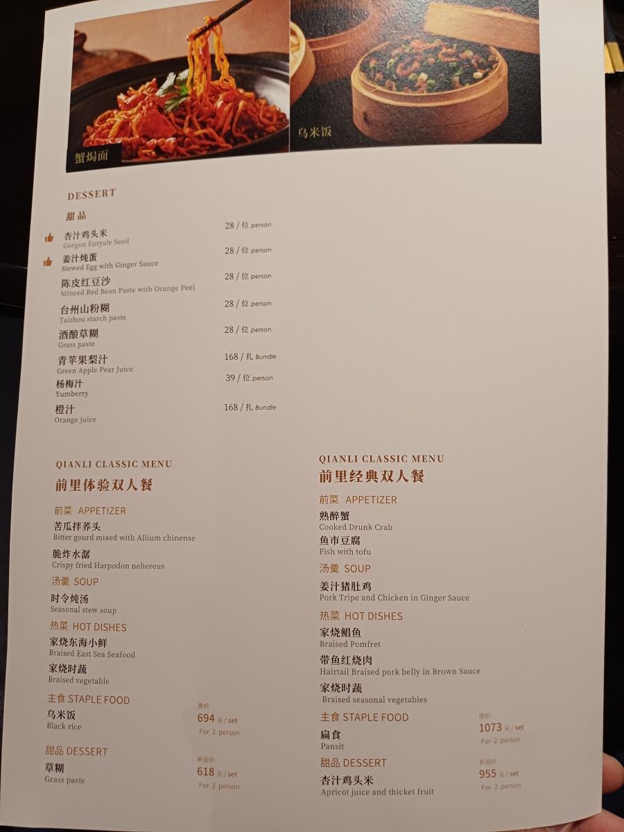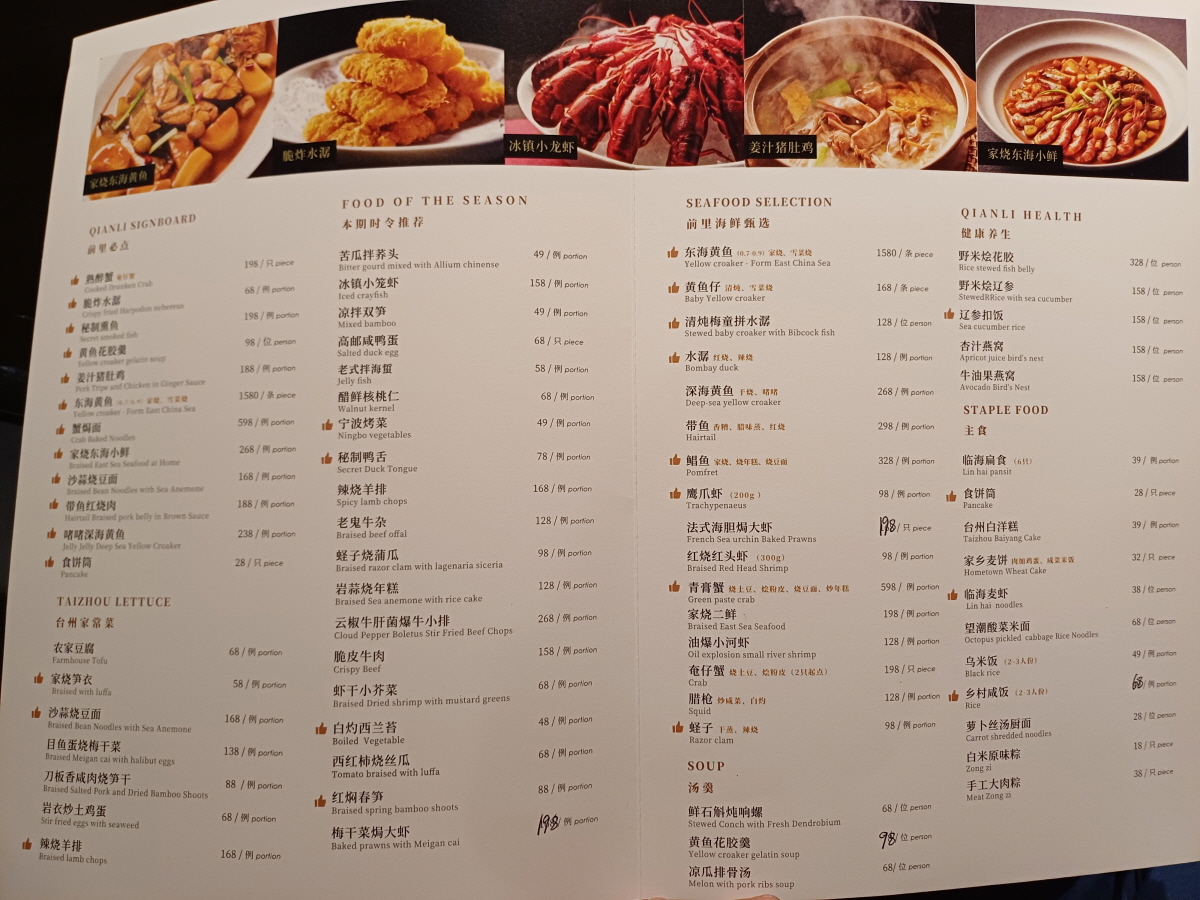 치엔리는 타이저우(台州)요리를 주력으로 하는 해산물 레스토랑으로 청두와 베이징에 매장을 운영하고 있으며, 2023~2025년 미쉐린 가이드 셀렉티드 식당에 선정된 곳이다.