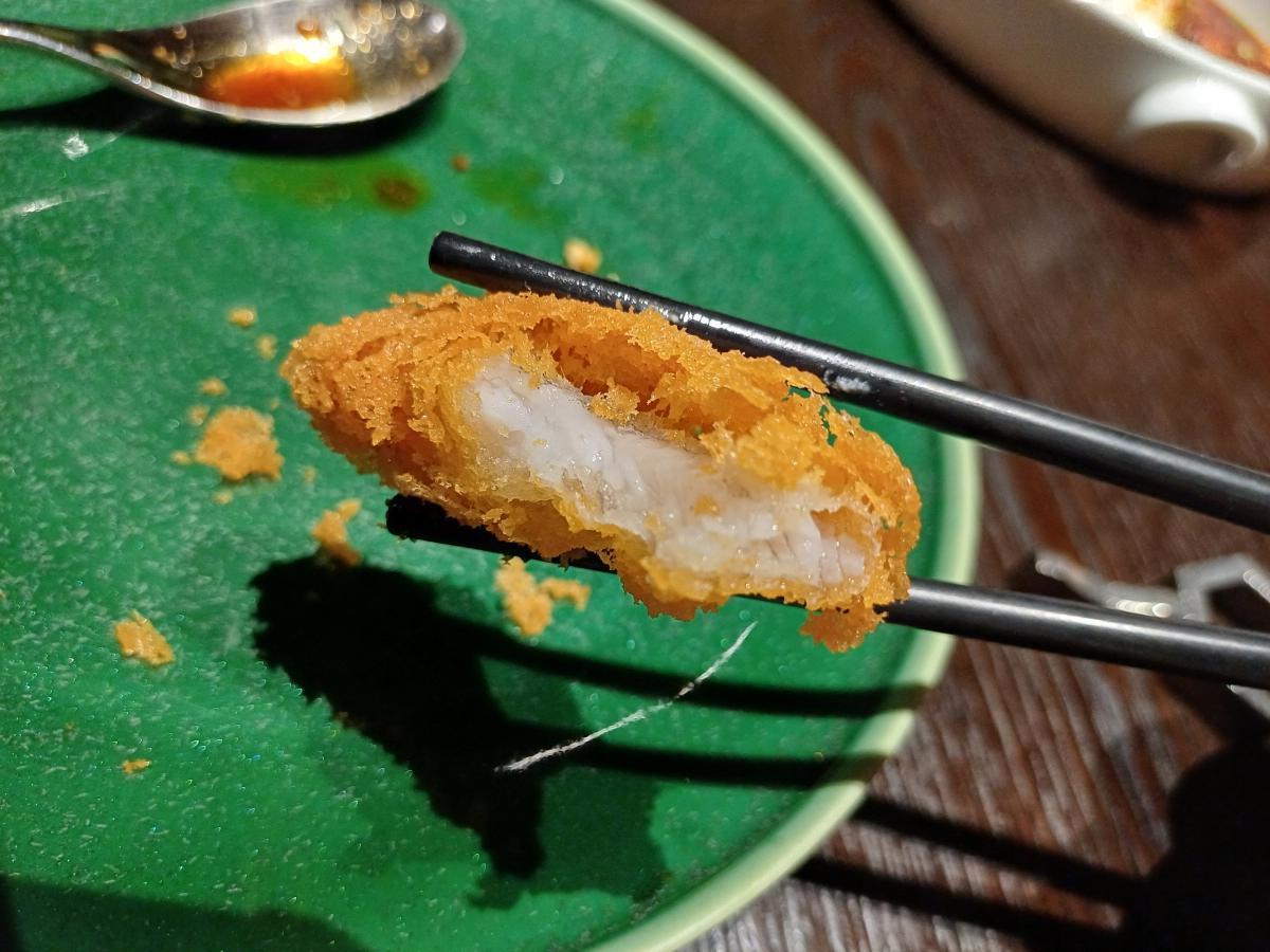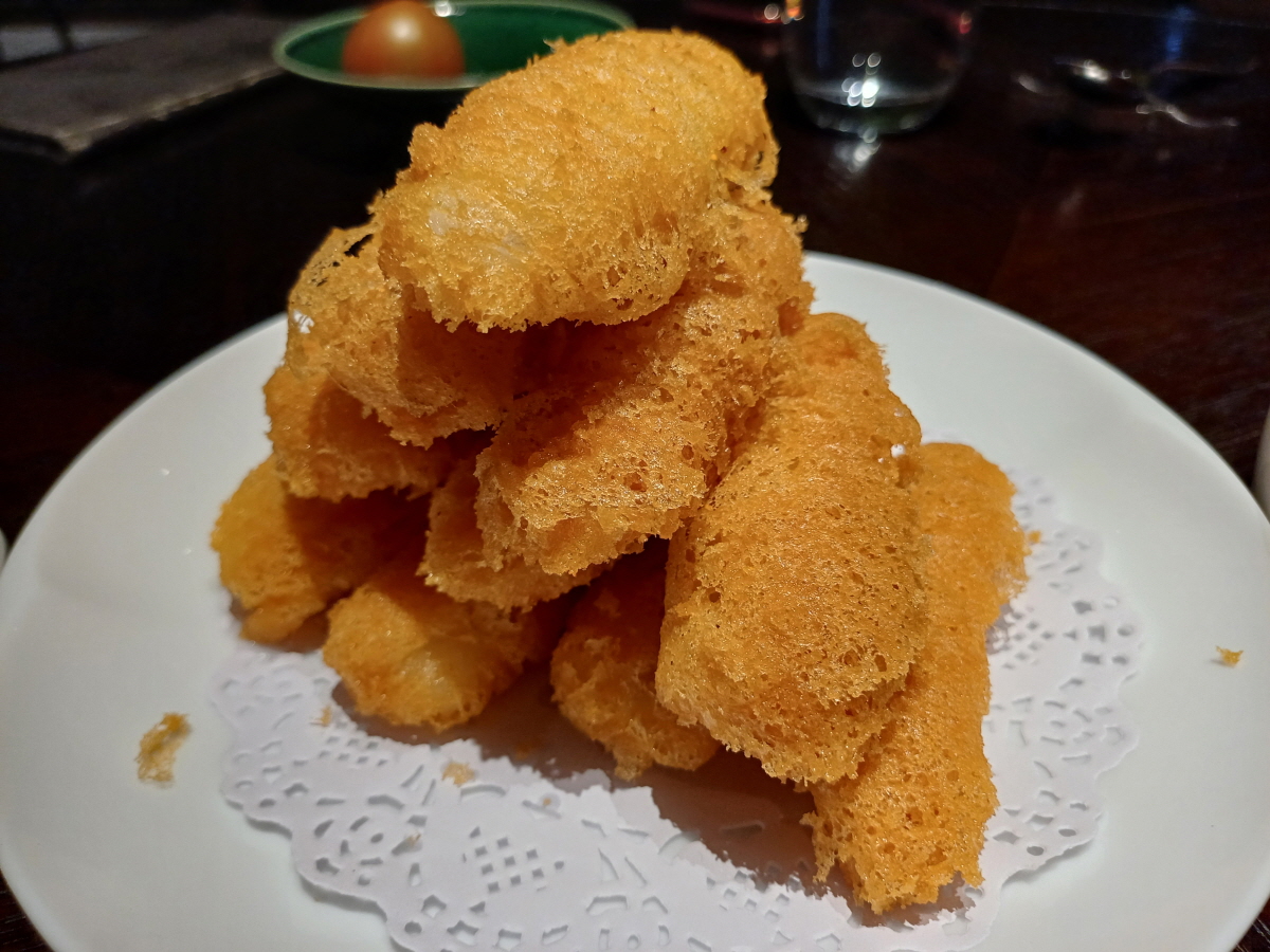제일 먼저 나온 메뉴는 이 식당의 대표 메뉴 중 하나인데, 부드러운 생선살을 아주 바삭하게 튀겨낸 요리다. 튀김이 부드러운 솜사탕처럼 입에서 살살 녹고, 생선살도 육즙이 살아있다. 개인적으로 살면서 처음으로 먹어본 맛으로 이곳에서 이 요리만 먹어도 성공이라고 생각할 정도였다.
