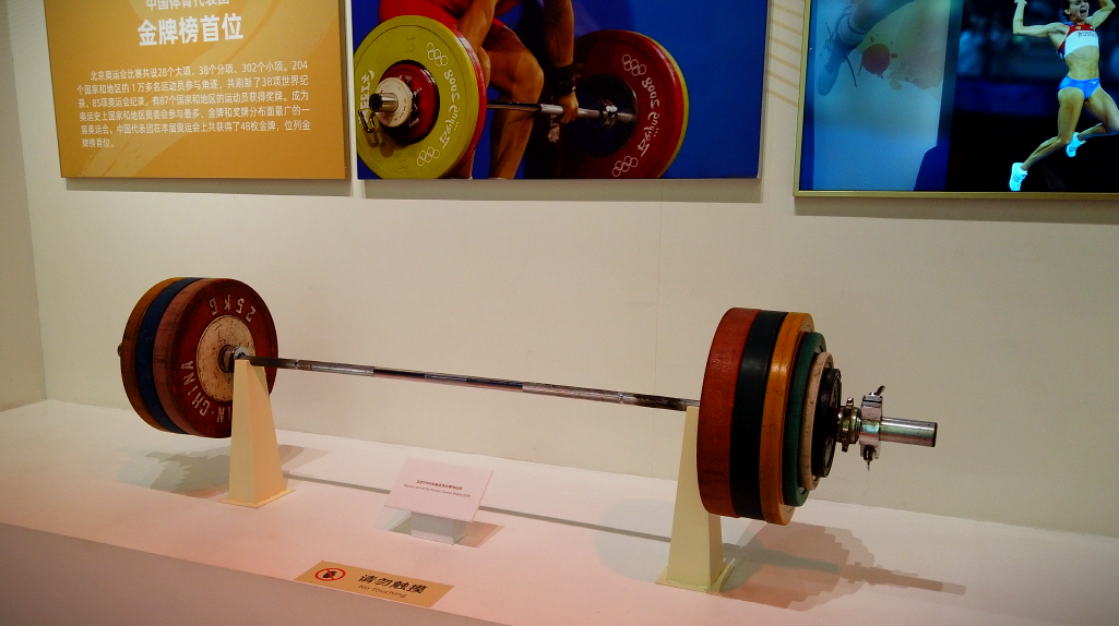 박물관으로 입장 후 좌측 전시실로 들어가면 올림픽 당시 선수들이 직접 사용했던 장비들이 전시되어 있었다. 당연히 금메달을 딴 중국 선수들이 사용했던 장비들이었다.