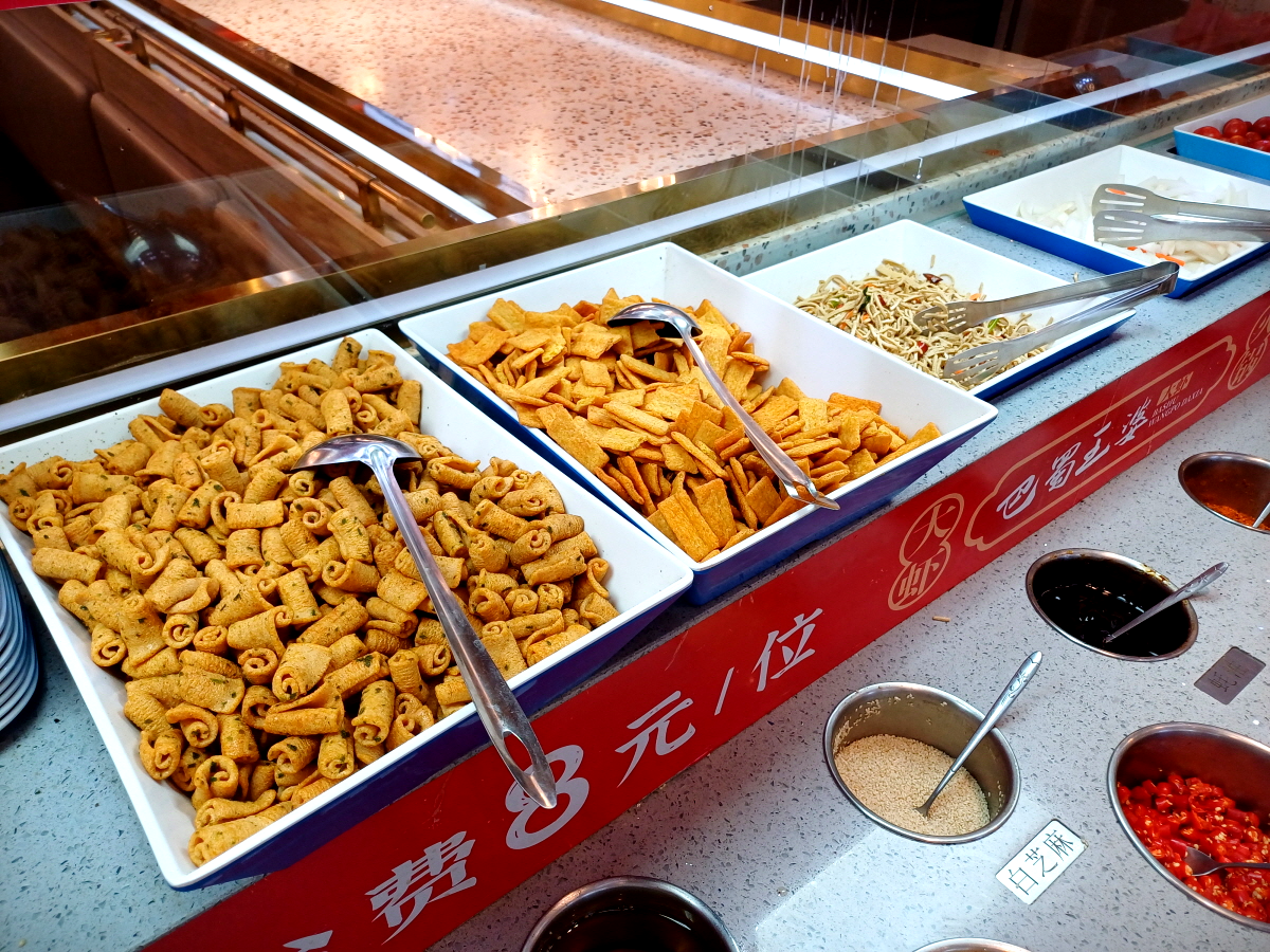 음식이 나오길 기다리면서 셀프바에가서 소스를 제조하고, 과자와 과일도 있어서 가볍게 먹어줬다. 다만 과자는 너무 중국맛이 나서 먹다가 포기했다.