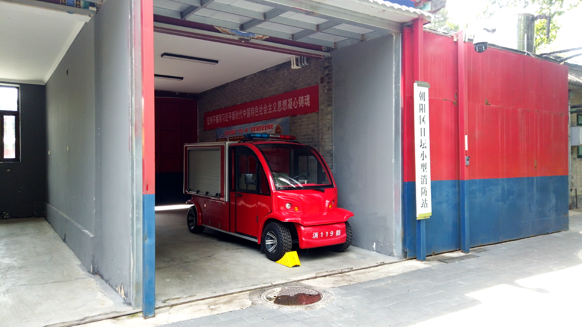 공원 내에 자리 잡고 있는 아담한 소방서와 아담한 소방차.