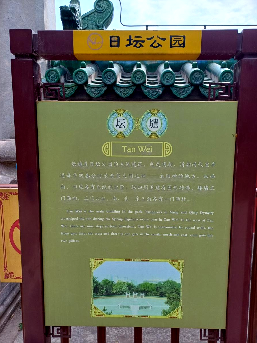 이 중 하늘의 제단인 천단(天坛, Tiāntán)과 땅의 제단인 지단(地坛, Dìtán)은 여러 번 방문을 해봤는데, 나머지 세 개의 제단인 태양의 제단인 일단(日坛, Rìtán), 달의 제단인 월단(月坛, Yuètán), 곡신의 제단인 선농단(先农坛, Xiānnóngtán)은 인기 관광지도 아니고, 천단과 지단과 비교했을 때 규모도 작은 편이라 가볼 생각 자체를 하지 않았었다.