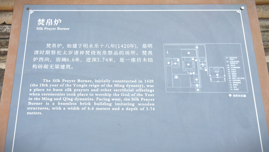 본격적인 고대건축박물관 건물로 들어가기 전 거대한 분백로(焚帛炉)가 보여서 잠시 구경을 했다. 신에게 제사를 지내기 위해 비단 기도문과 제물들을 태우던 곳이라고 한다.