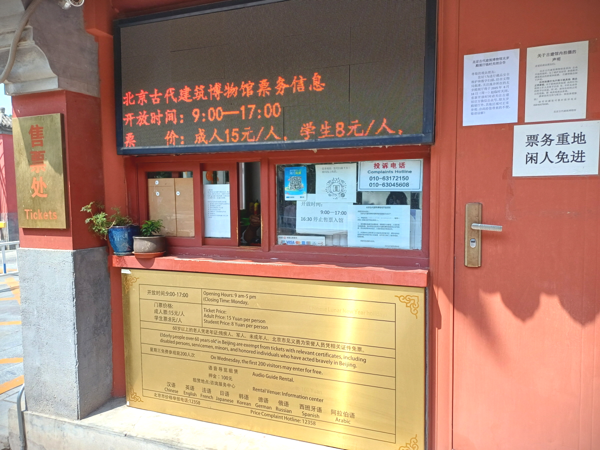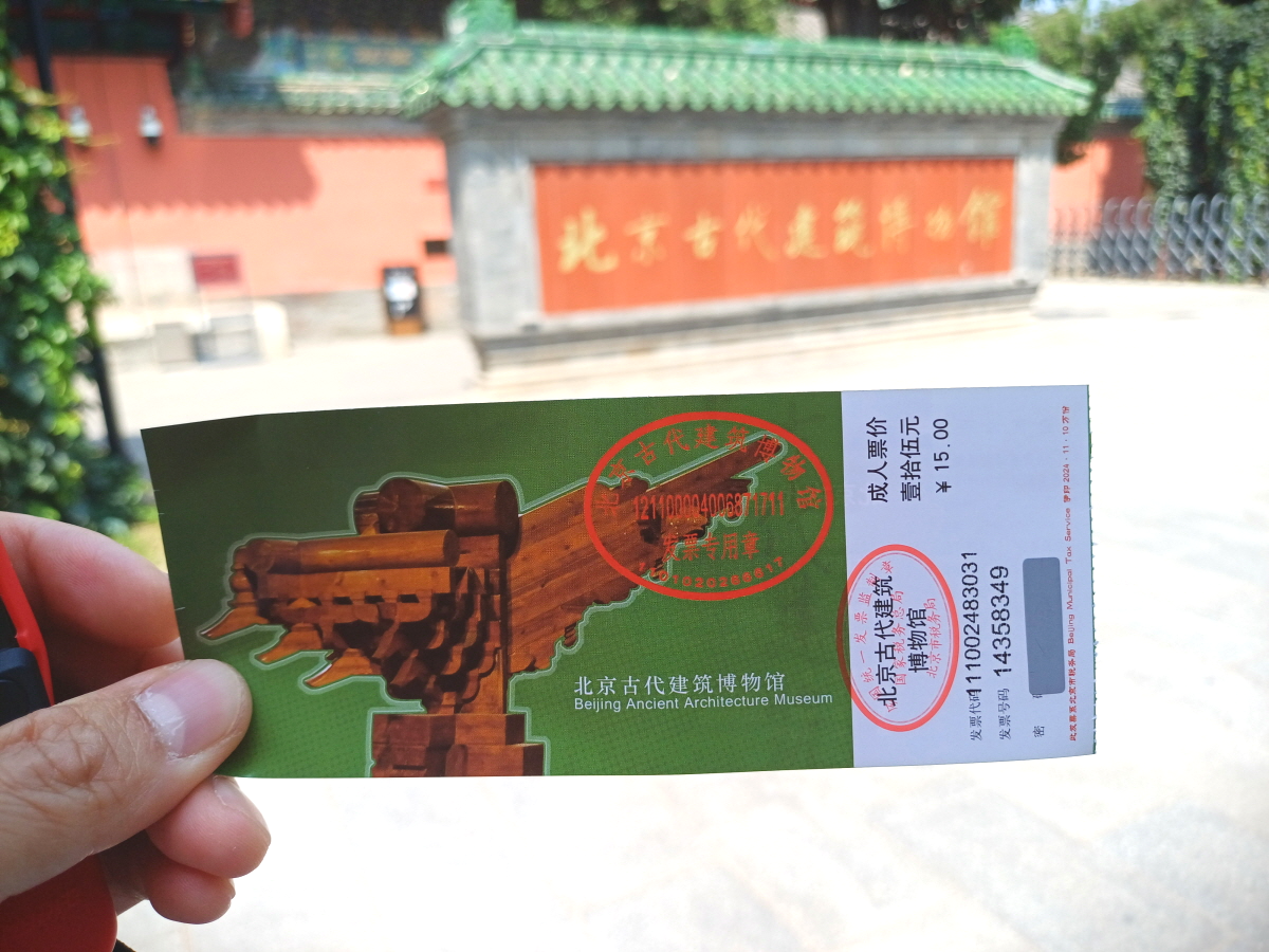 안쪽에 북경고대건축박물관이라는 기와 명패가 보이는 입구를 통해서 들어가면 된다. 표검사를 하고 간단한 짐검사 후 입장이 가능했다.