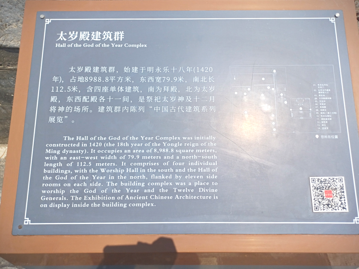 태세전(太岁殿)과거에는 자연 신령에게 제사를 지냈던 곳인데 지금은 고대건축박물관의 전시실로 이용 중이다.