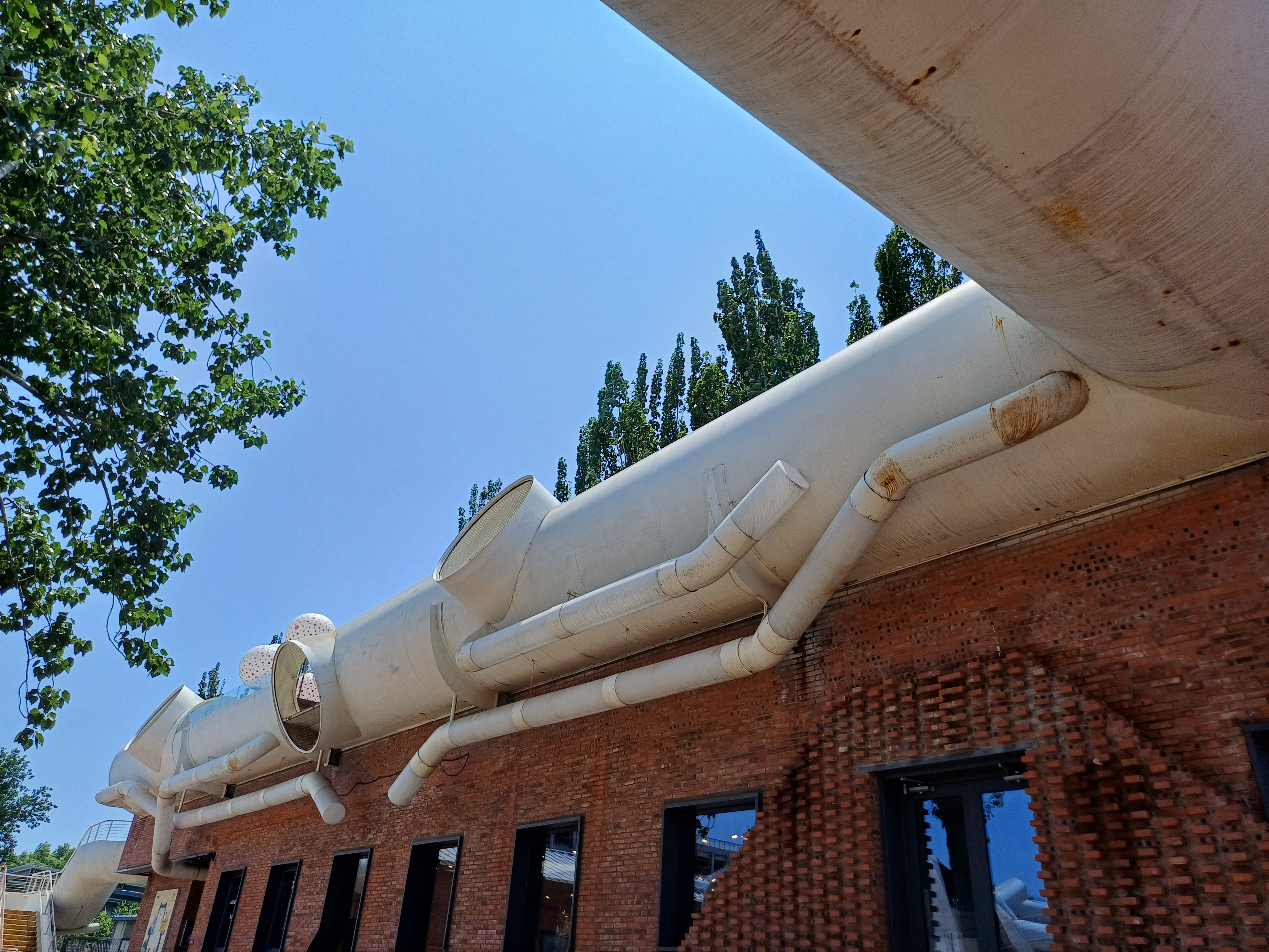 단지 곳곳 아직도 과거 방직창고의 모습을 간직하고 있는 건물들이 많았으며, 당시 사용했던 자재이동 슬라이드도 그대로 남아 있었다.