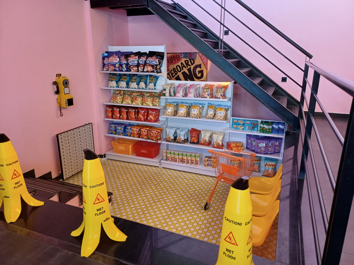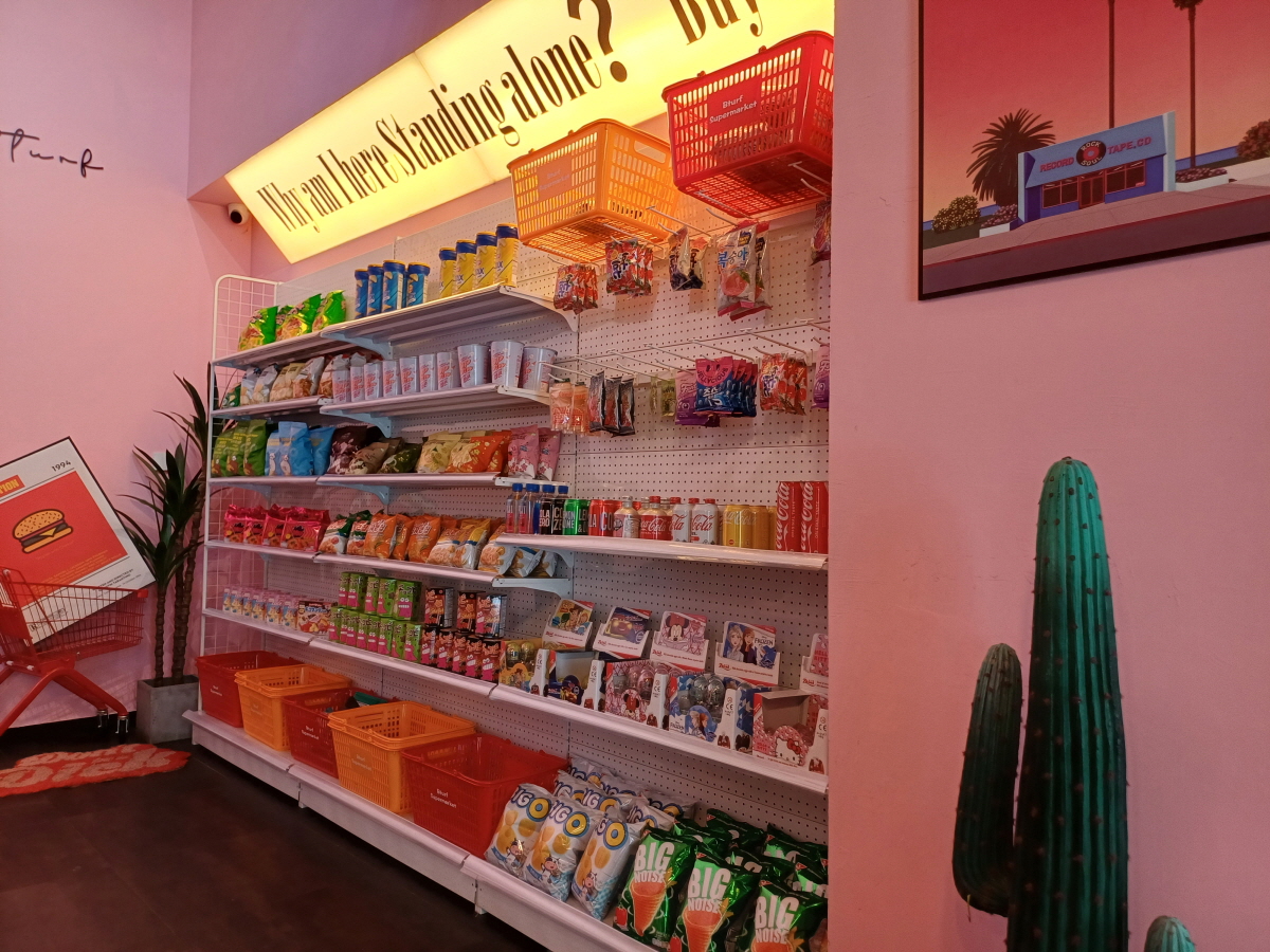 2층과 야외에도 좌석이 있었으며, 한쪽에는 다양한 수입 스낵도 판매하고 있었다.