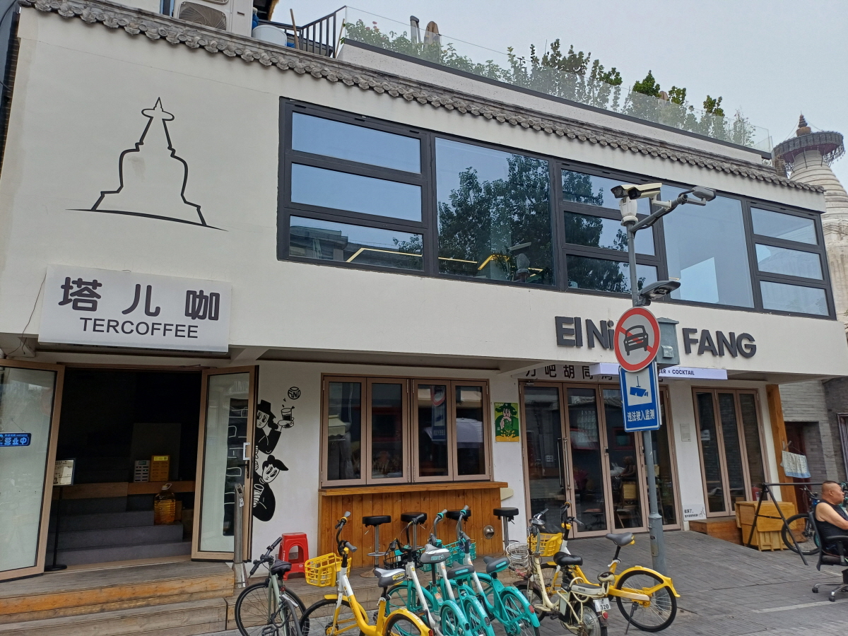 후통으로 들어가 한 바퀴 돌고 왔는데, 후통 안에 식당과 카페가 많았다. 대부분 2층으로 올라가 백탑을 조망할 수 있는 구조로 만들어져 있었다. 묘응사를 둘러본 뒤 식사를 하거나 커피 한 잔 하며 시간을 보내기 좋은 거리였다. 나름 핫플 분위기였다.