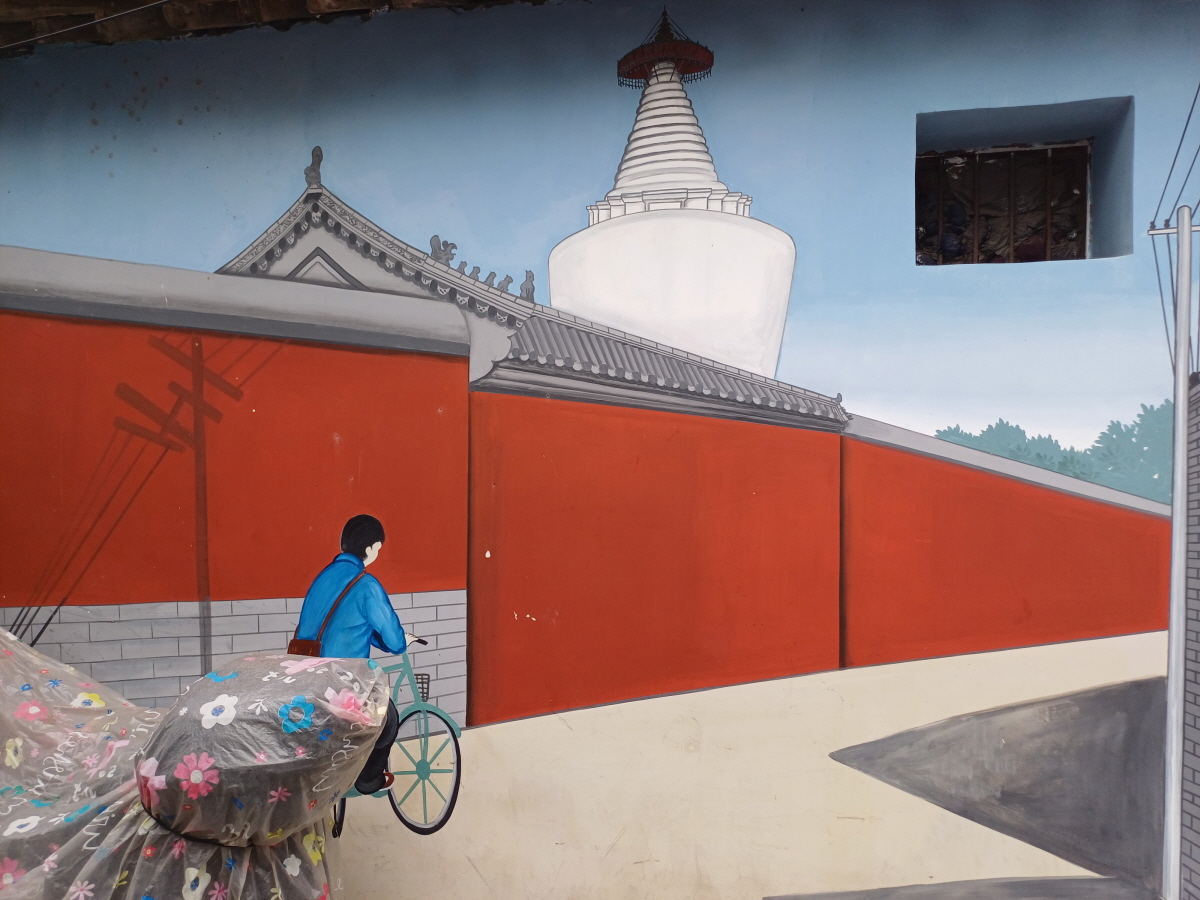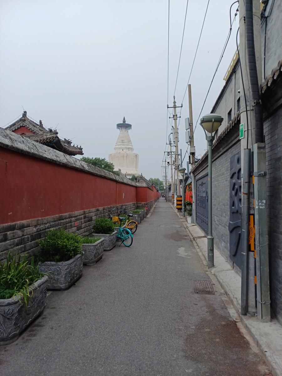 묘응사 동쪽과 서쪽에는 작은 골목길인 후통이 있는데 먼저 동쪽에 위치한 길을 걸어 봤다. 붉은 담장 너머로 보이는 백탑 덕분에 포토존으로 손색이 없이 곳이었다. 이 골목길은 상권이 없는 일반인 거주구역으로 시민들의 삶을 직접 느껴보는 재미도 있었다.
