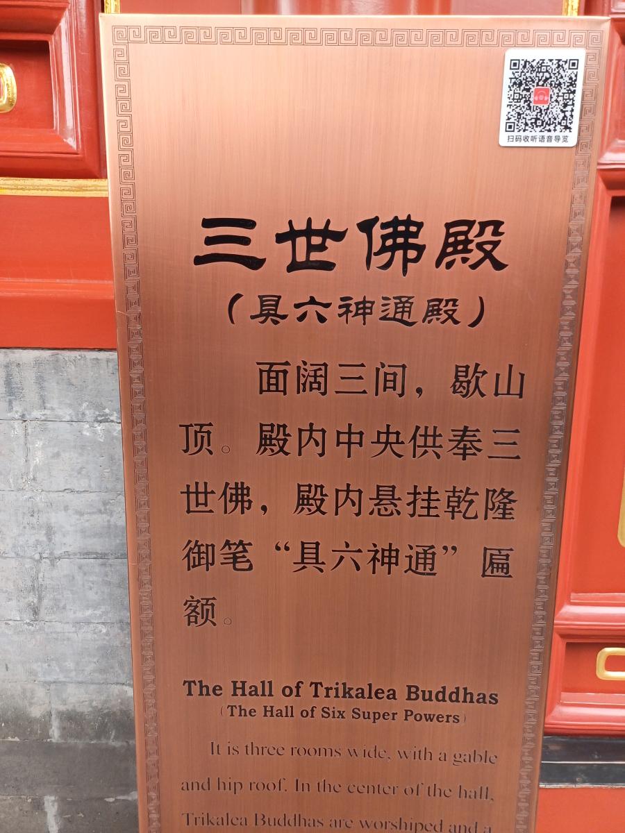 칠불보전을 지나니 이번에는 삼세불전(三世佛殿)이 나온다. 일명 구육신통전(具六神通殿)이라고 부르는데 전내에 건륭제의 어서인 구육신통이(具六神通 라는 편액이 걸려 있기 때문이다.