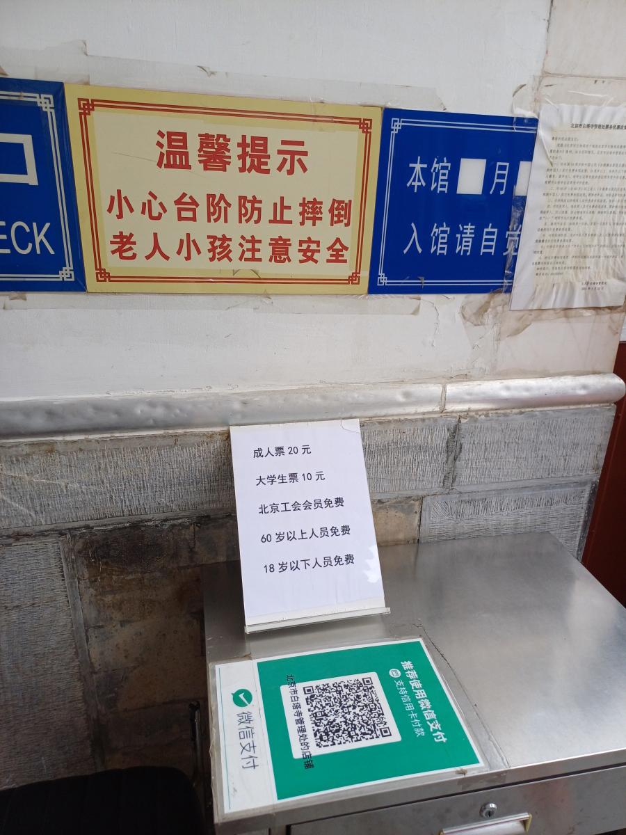 입장권은 입구에 안내판에 있는 QR코드를 스캔해서 온라인으로 구매를 해도 되고, 현장 매표소에서 바로 구매를 해도 된다. 입장료는 성인 20위안, 학생 10위안, 60세 이상 18세 이하는 무료입장 가능하다.