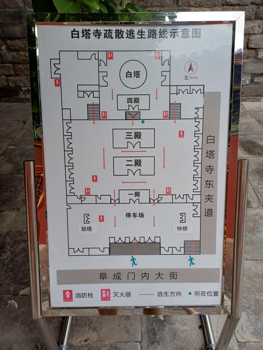 칠불보전을 지나면 드디어 이 사찰의 랜드마크인 백탑이 나오는데, 이 백탑에 오르는 것은 금지되어 있었다. 백탑에 무슨 비석이 있어서 살펴보니 중화민국 26년(1937년) 이 백탑을 수리했다는 내용이 담겨 있었다. 그리고 그 옆에 라덕준(罗德俊) 수서(手书)라는 누군가의 친필 문서를 새겨놓은 금속판이 보였다.