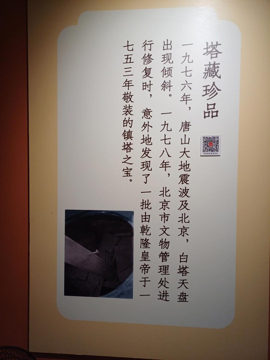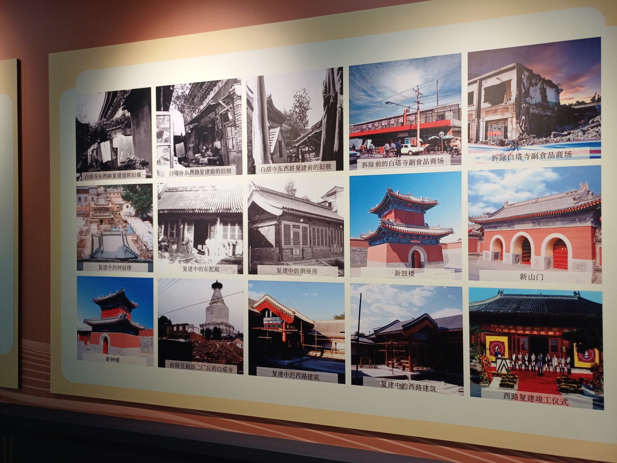사찰 중심부 건물 좌우에 위치한 작은 건물들은 전시실로 운영 중이었는데, 건물 중 한 곳은 백탑의 역사에 대해 전시를 하고 있었다. 백탑의 시작부터 수리 과정, 수리 중 발견된 보물 등이 전시되어 있었다.