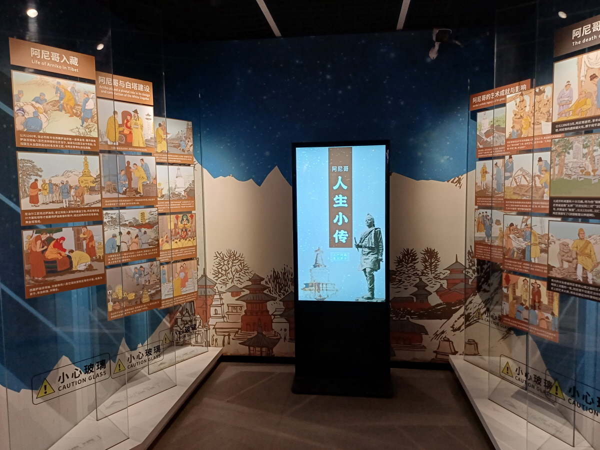 전시실 안쪽에는 아니고의 인생에 대해서 여러 삽화와 함께 자세하게 안내를 해놨다. 찬찬히 살펴봤는데 과거 네팔에서 중국 베이징까지 와서 백탑을 만들고 이후 중국에서 살았을 그의 인생을 생각해 보니 참 고생이 많았다는 생각이 들었다.