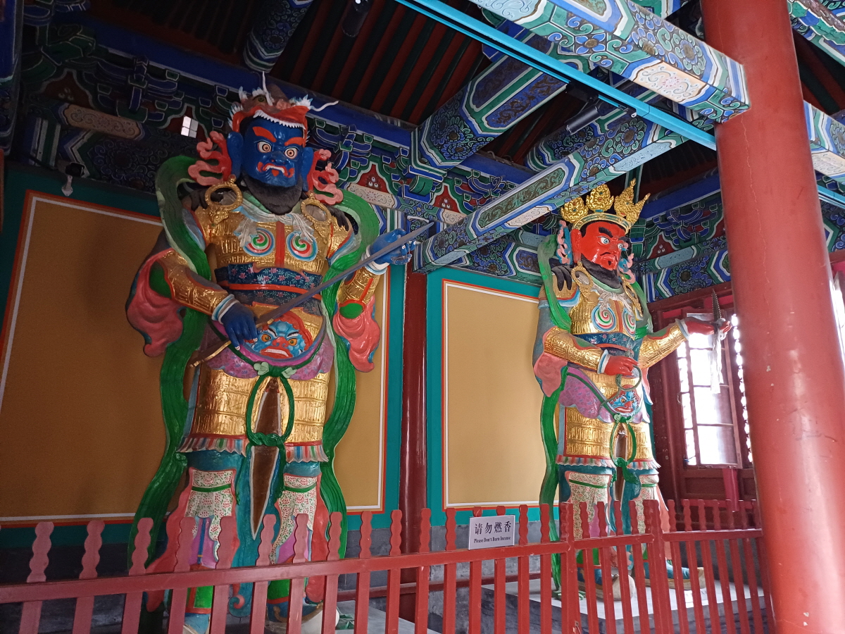 입구로 들어가면 주차장이 나오고 그 뒤로 천왕전(天王殿)이 나온다. 이곳에는 사대천왕의 조각상이 자리하고 있다.