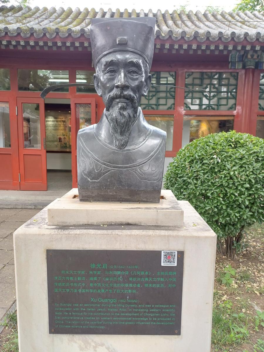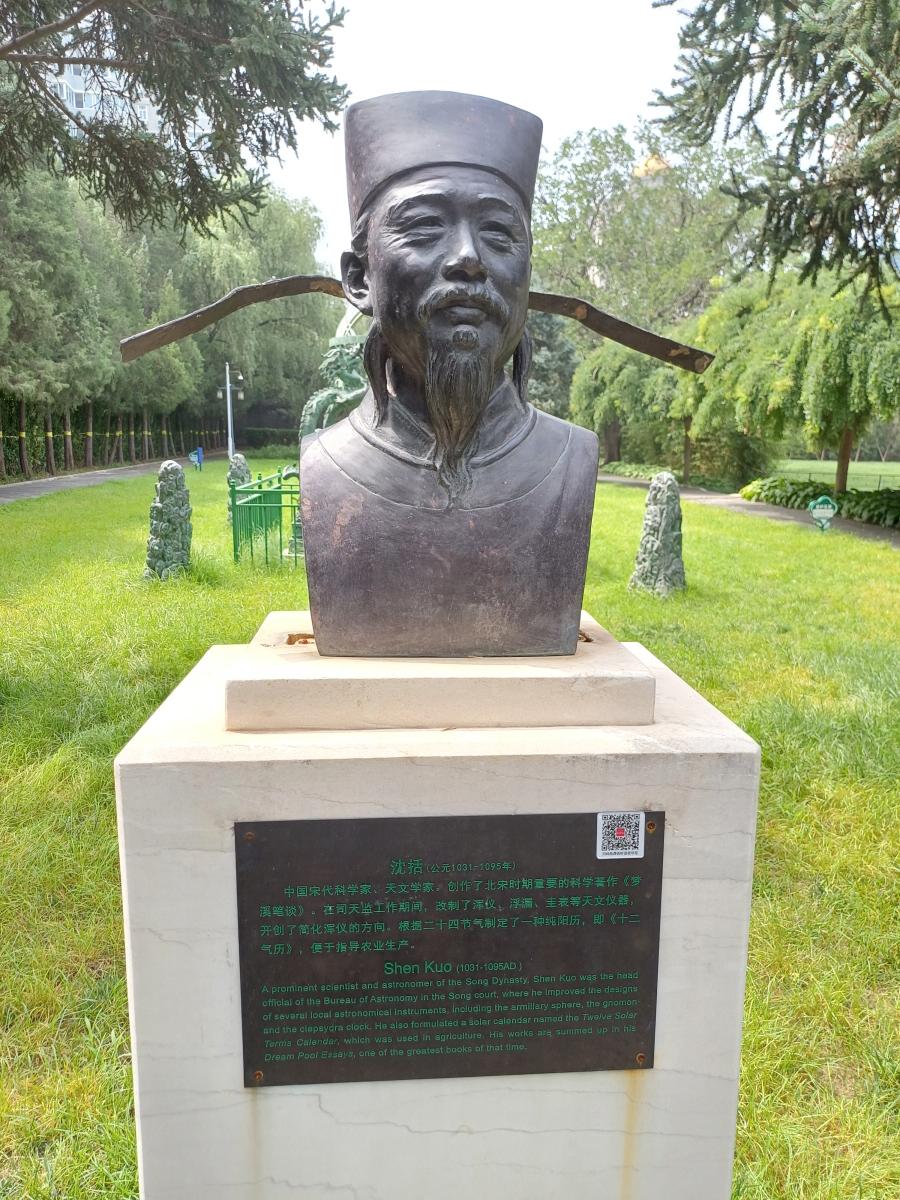 이곳에는 두 명의 동상이 있는데 송나라의 천문학자이자 천문국 수장이었던 '심괄(沈括/1031~1095)'과 원나라 시대의 천문학자 곽수경(郭守敬/1231~1316)이다. 여러 천문대와 천문 기구들을 만들었다고 한다.