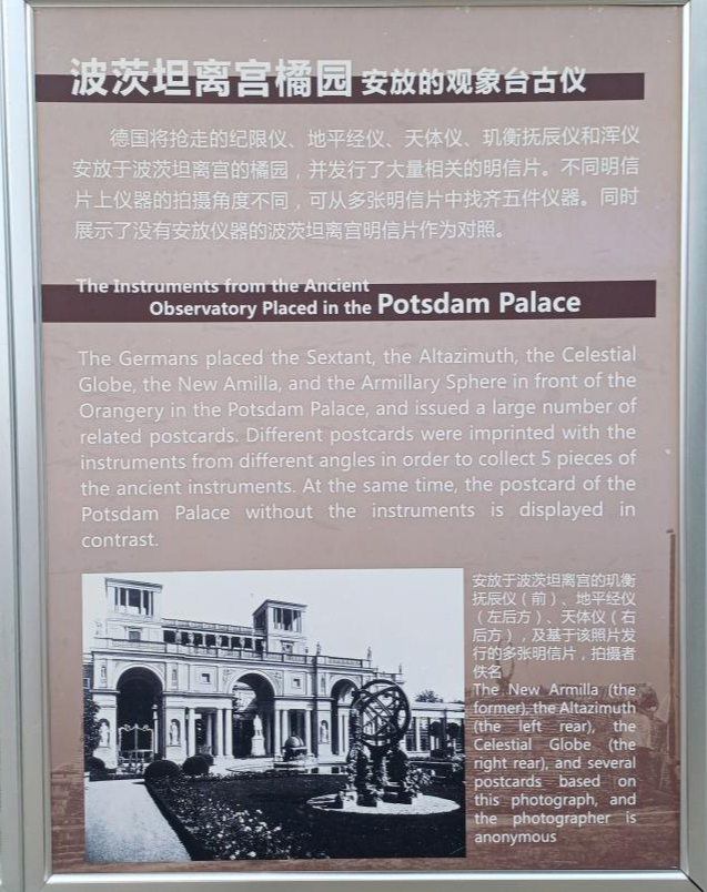 1900년대 독일군과 프랑스군에게 도난당했던 역사와 사진도 기록되어 있었는데, 독일은 10개의 천문기구 중 5개를 약탈해서 포츠담궁 앞에 전시를 해놓고 사진을 찍어 엽서도 발행도 했다고 한다.
