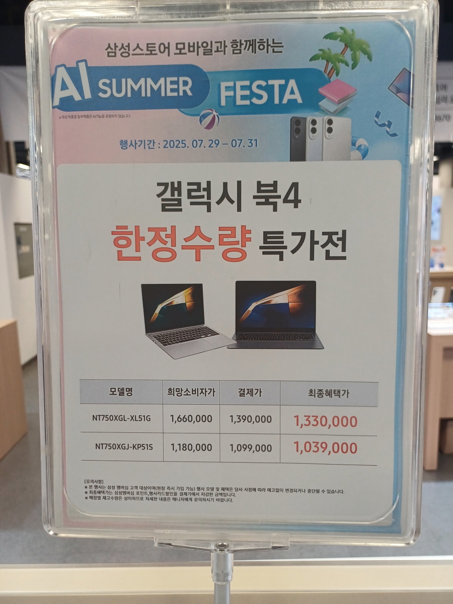 최근 주력 제품은 갤럭시북 5의 경우 기본적으로 가격이 200만 원이 넘어가고, 과거 라인업 제품인 갤럭시북 4는 할인이 많이 되어서 100만 원대 초반 가격으로 구매가 가능했다.
