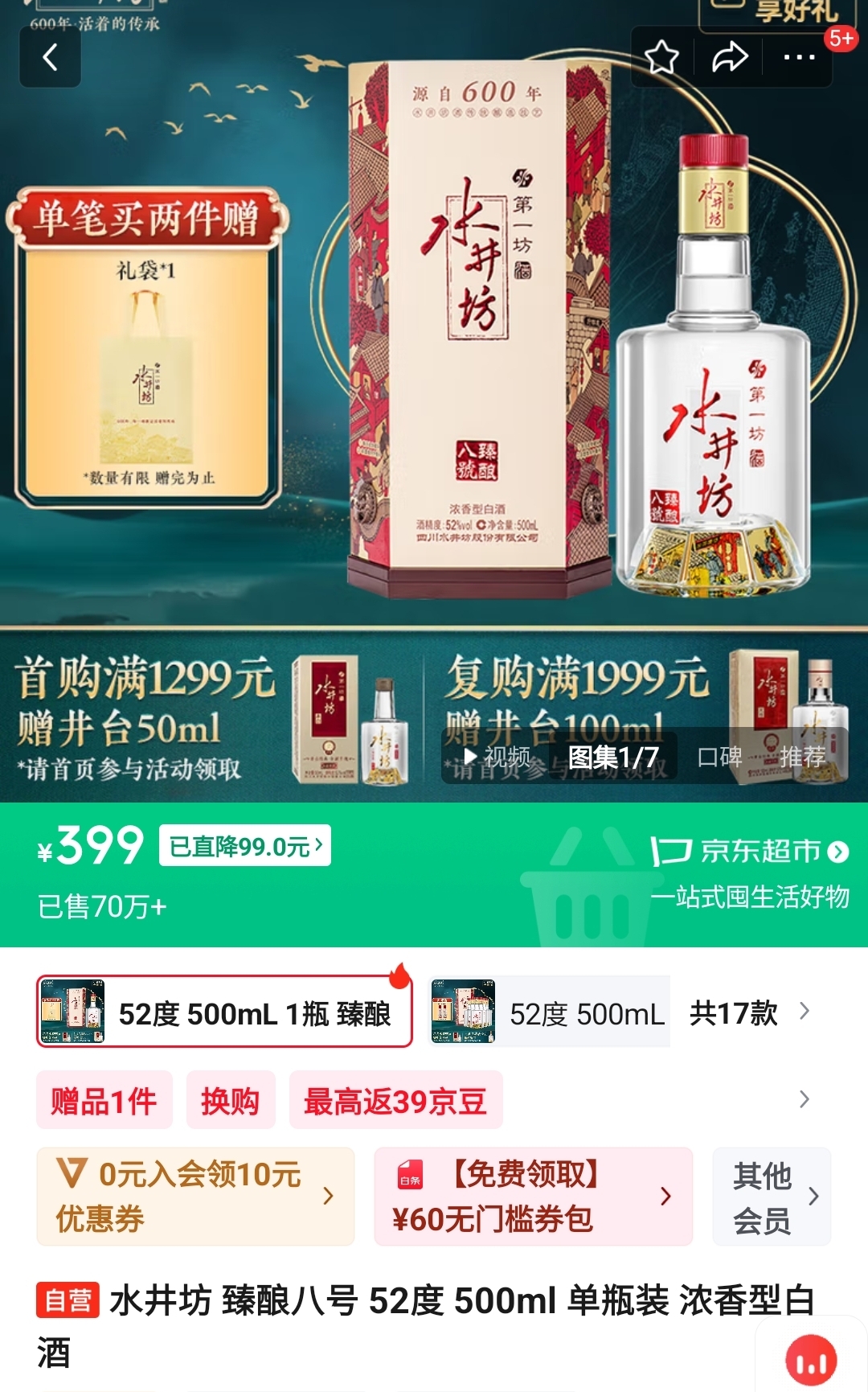 중국 현지 온라인 쇼핑몰에서 판매하는 수정방 보급형 라인업인 진양 8호인데, 현지에서 399위안(한화 약 7만 7천 원) 정도에 구매가 가능하다. 현지에서 구매가 가능하다면 기내 면세점 제품을 사지 말고 이 제품을 구매하길 추천한다. 가성비 굿!