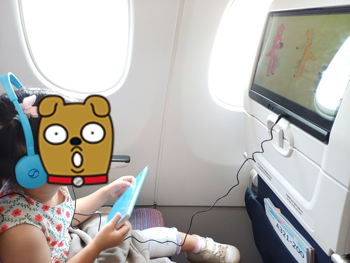 아이가 탑승한 것을 확인한 뒤 승무원이 아이용 해드폰과 비행기 조립장난감을 바로 갖다 줬다. 역시 대한항공!! 덕분에 비행시간 내내 아이가 지루해하지 않았다.