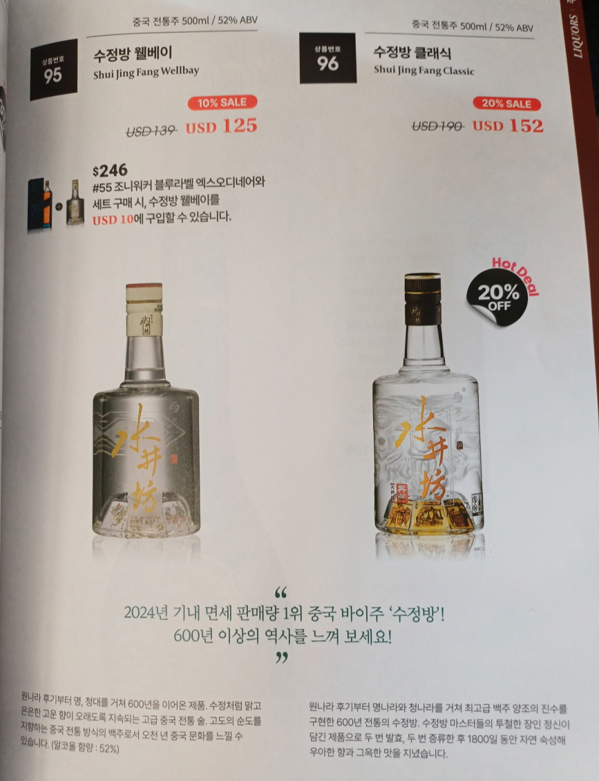 백주를 꼭 사가야 하는데 비행기 탑승 전에 구매를 하지 못했거나, 돈걱정이 없는 사람 말고는 대한항공 기내면세점에서 백주 구매는 비추천한다.