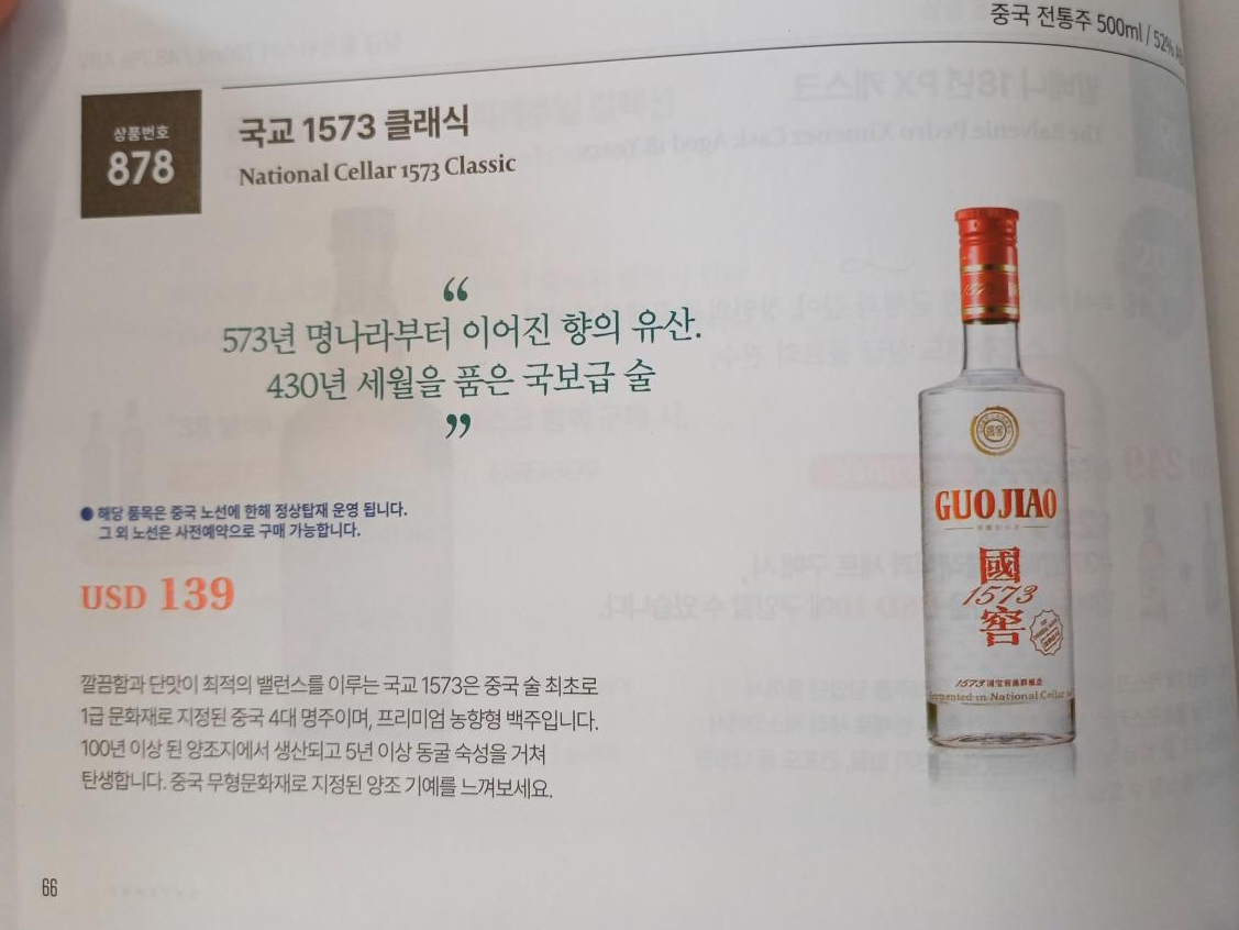 징동 온라인 쇼핑몰에 기내 면세점에서 판매하는 해외 수출용 제품과 동일한 제품이 판매되고 있었는데, 온라인 쇼핑몰 판매 제품이 약 5만 원가량 저렴했고, 중국 내수용과 비교해도 내수용 제품이 약 3만 정도 저렴했다. 국교 1573은 가능하면 중국 현지에서 구매하길 추천!