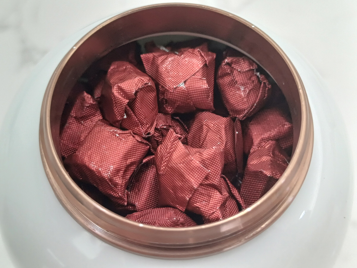 세 가지 맛의 보이차고를 모두 용기에서 덜어낸 뒤 용기 세 개에 균등하게 나눠서 다시 담았다. 선물 받는 사람 입장에서는 다양한 맛을 즐기는 것이 좋을 것 같아서 번거롭지만 조금 노가다를 했다.