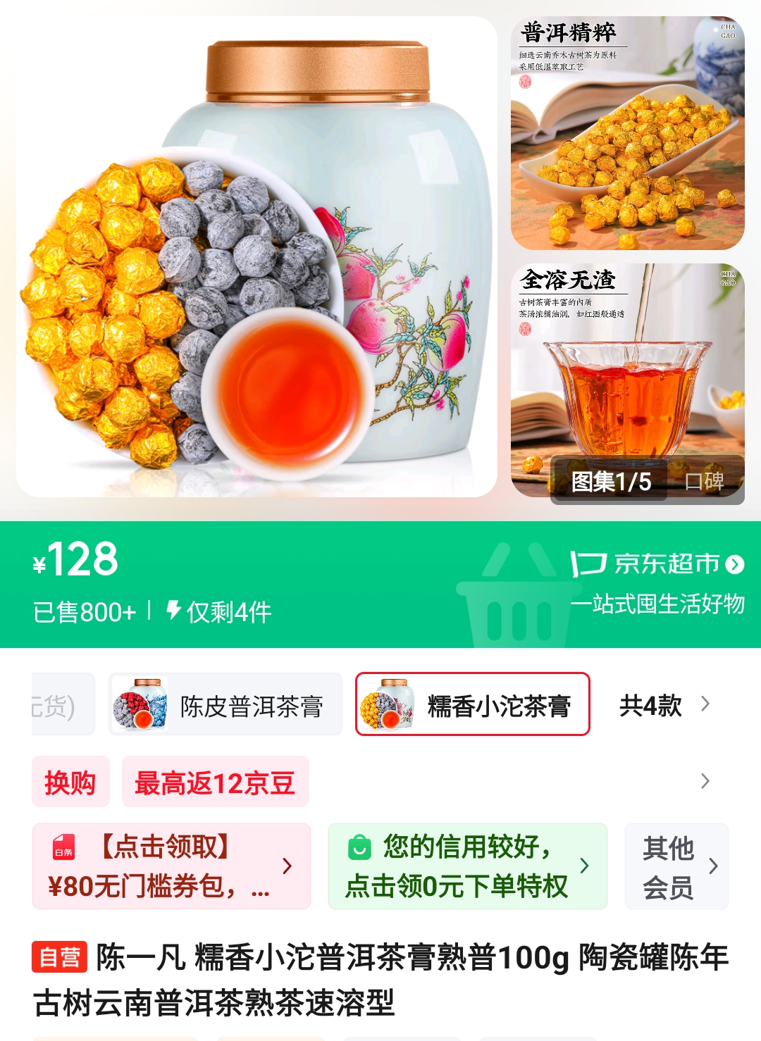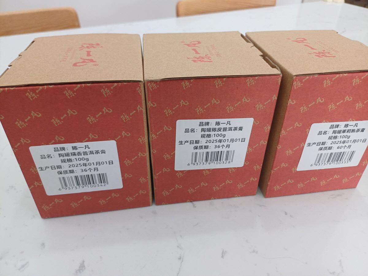 인터넷으로 검색을 해보니 정말 다양한 보이차고가 판매되고 있었다. 그중 천이판(陈一凡) 브랜드의 보이차고가 가격도 적당하고 포장도 괜찮아 보여서, 총 3가지 맛을 구매해 봤다. 가격은 한 통(100g)에 RMB128이다.