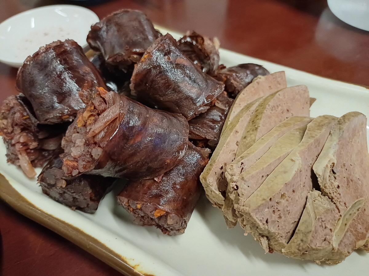 먼저 나온 순대와 간, 정말 오랜만에 먹어보는 한국식 순대였는데 순대 안의 당면이 쫄깃하니 식감이 너무 좋았고, 같이 나온 간도 고소하고 담백했다.