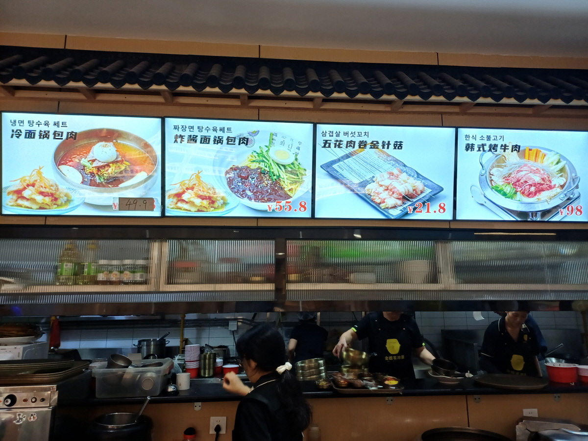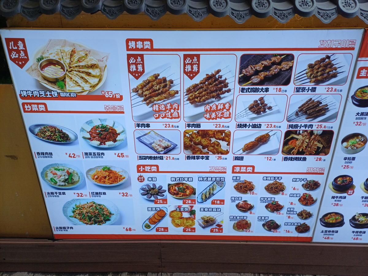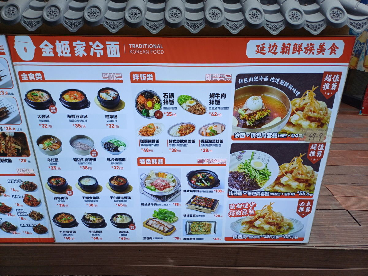 식당 입구에 메뉴판이 있어서 살펴봤는데, 냉면과 짜장면, 궈바로우가 주력 메뉴고, 각종 찌개류와 국밥, 비빔밥, 덮밥 등을 취급하고 있었으며,