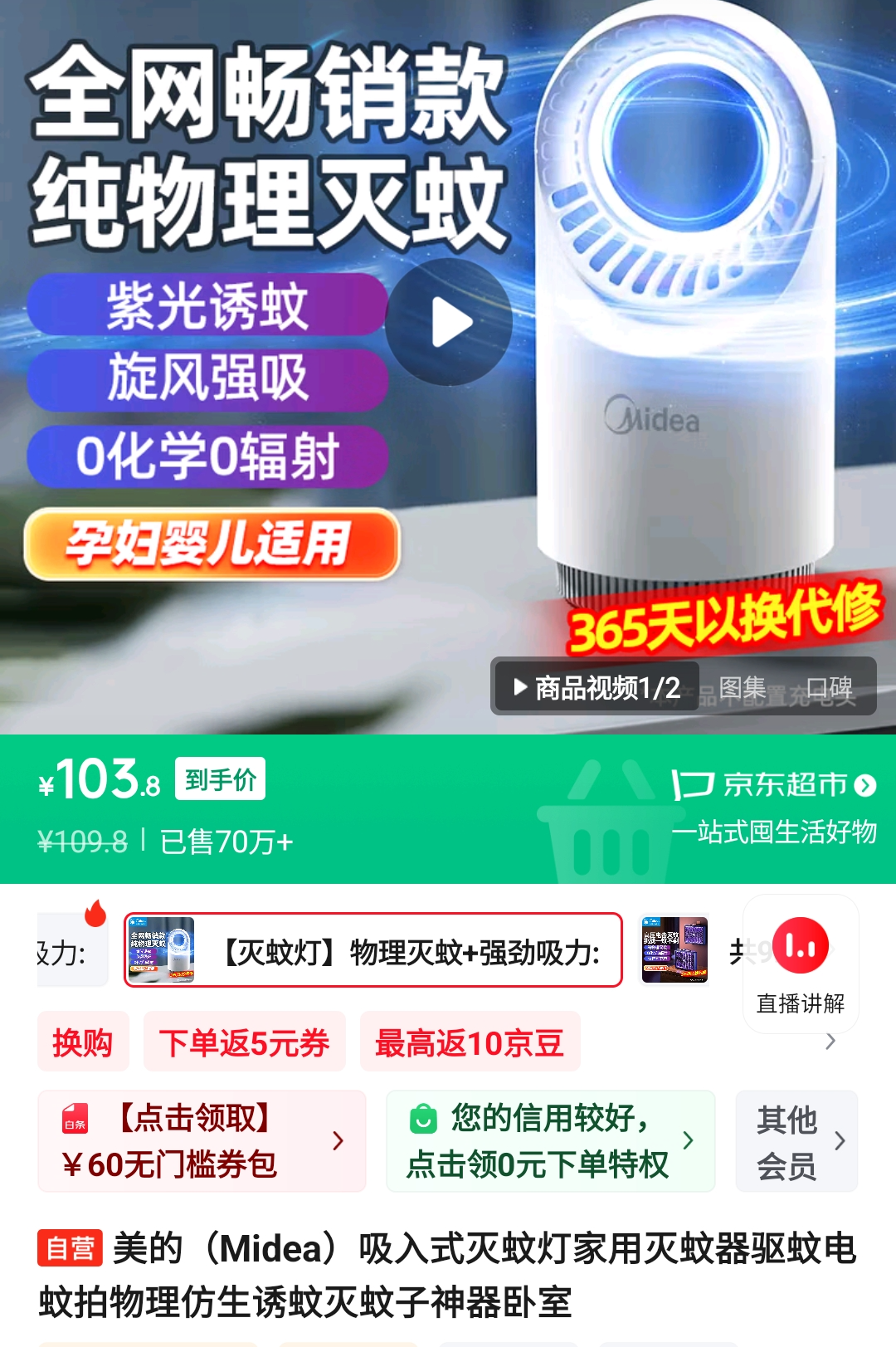Midea 흡입식 모기 퇴치등 사용 후기