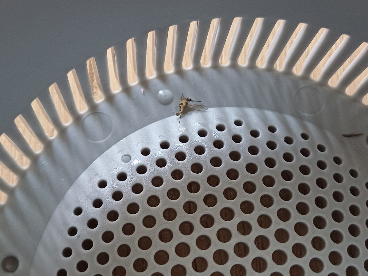 매일 자기 전에 켜고, 아침에 일어나서는 끄고를 반복하기를 이틀 지속을 한 뒤, 트랩을 오픈해 보니 모기 한 마리가 말라서 죽어 있었다. 여러 마리가 죽어 있는 그림을 기대했는데 한 마리밖에 없어서 다소 실망했지만, 그래도 효과가 있다는 것을 확인할 수 있어서 나름 만족스러웠다.