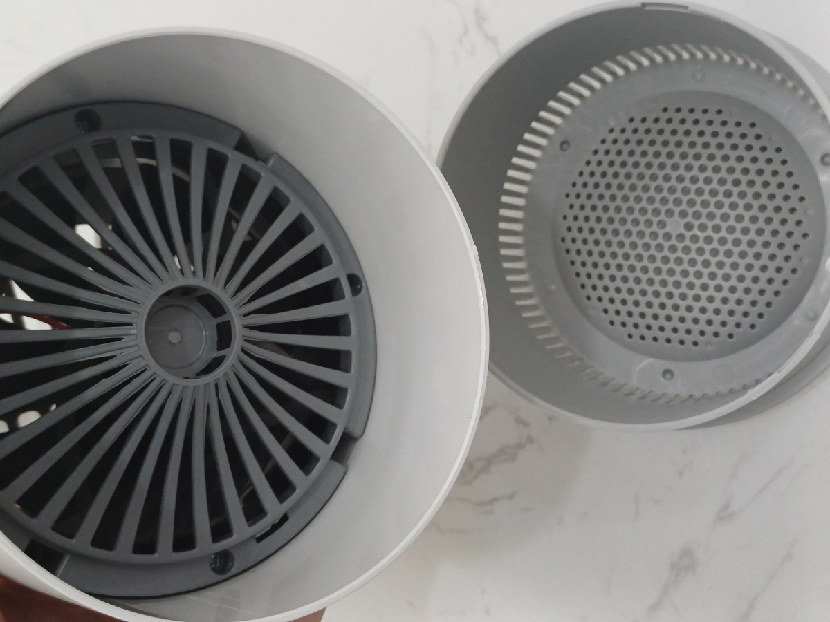 하단 부분이 분해가 되는데, 이곳이 포획된 모기가 갇혀서 말라죽는 공간이다. 작은 구멍들이 있긴 한데 모기가 나가기에는 구멍이 모기보다 작아 보였다.