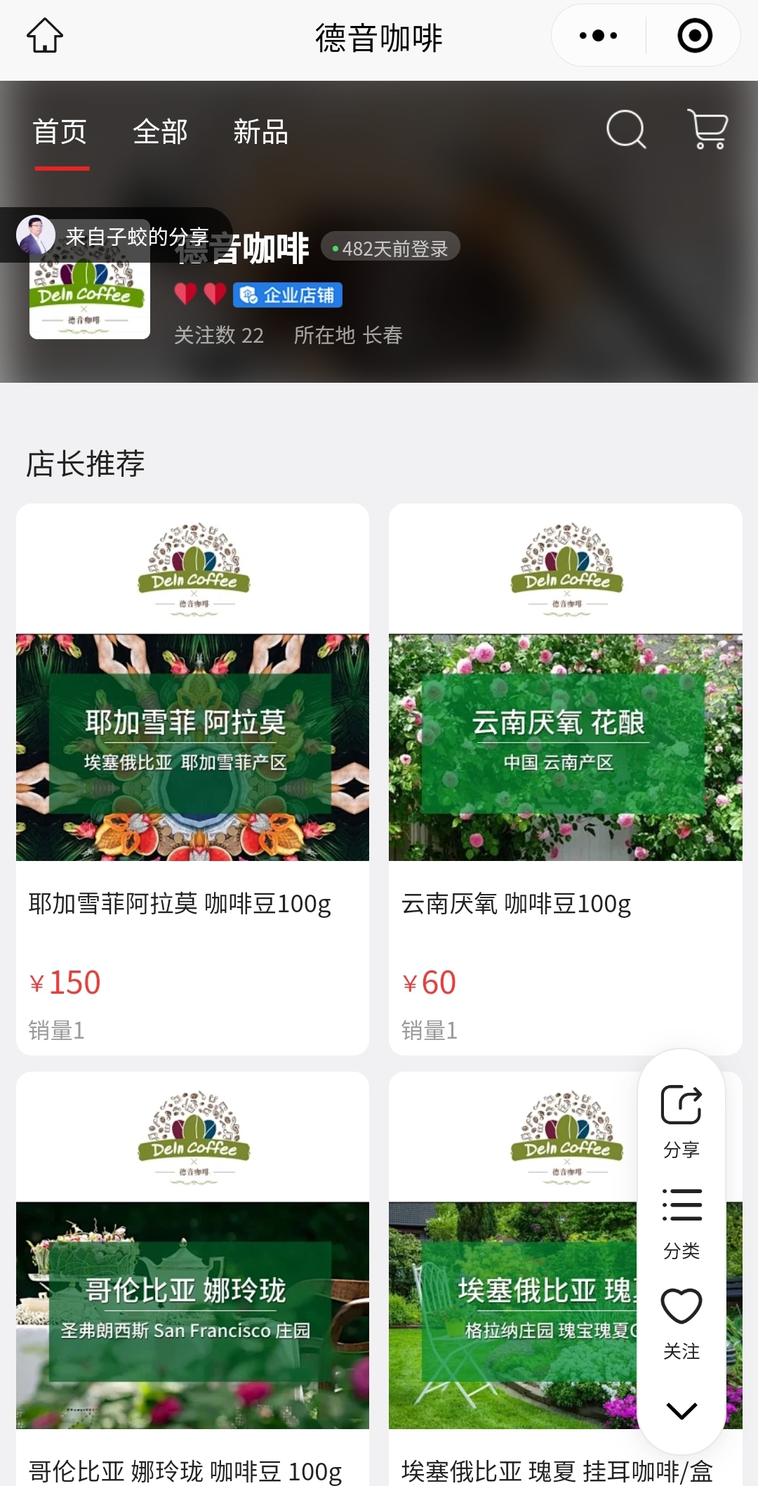 커피는 잘 모르는 분야기 때문에 일단 어디서 판매하는 커피인지 찾아봤는데, 이 커피를 판매한 카페는 중국 장춘시에 위치하고 있었다.