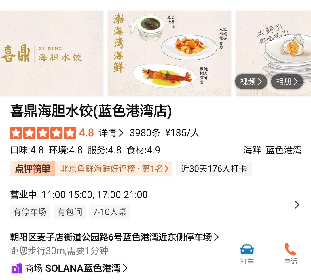 방문한 식당은 시딩(喜鼎)이라는 성게만두 전문점인데, 2015년에 대련(大连)에서 설립된 고급 브랜드 식당으로 전국에 700여개의 직영점을 운영하고 있다고 한다. 베이징에는 솔라나(蓝色港湾)와 싼리툰(三里屯)에 매장이 두 곳이 있다.