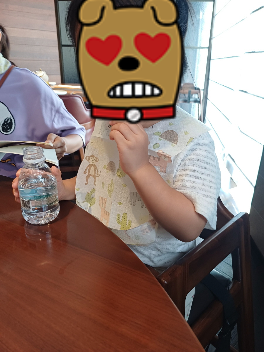 안쪽 좌석으로 안내를 받아 착석하자마자 직원이 일회용 아기 턱받이와 작은 생수, 간식을 가져다줬다.