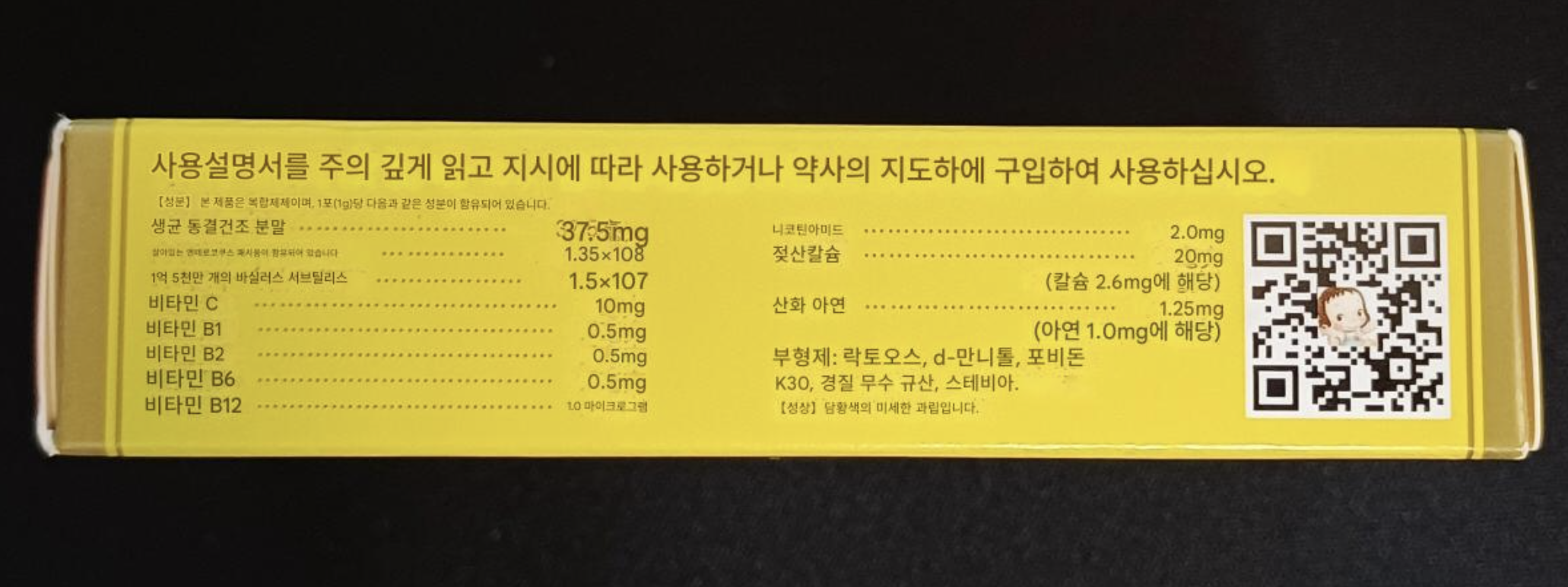 성분을 자세히 살펴보면 유산균을 기본 바탕으로 각종 비타민과 그 외 성분들로 구성되어 있다.