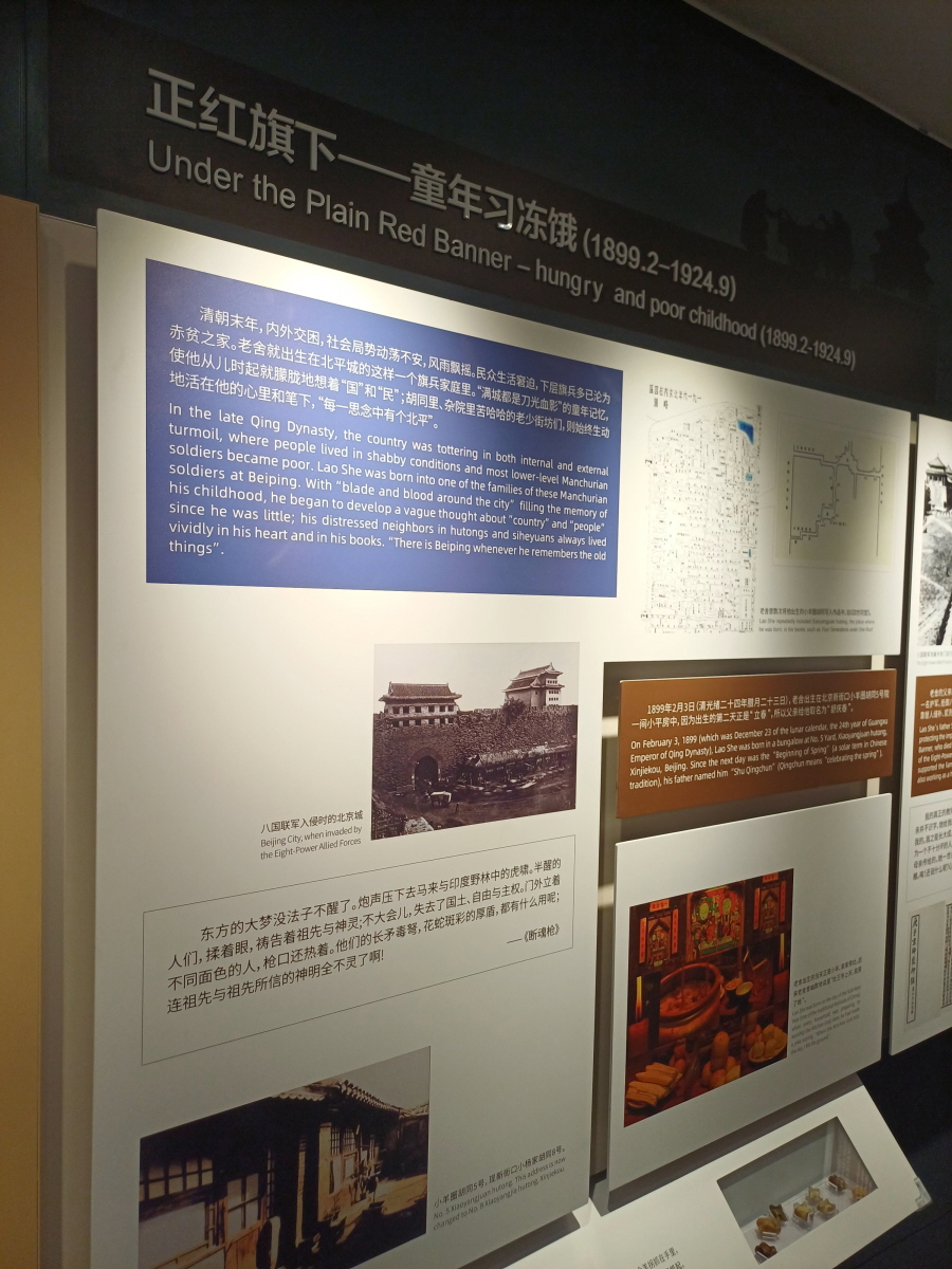 라오서의 출생부터 사망까지 그의 인생에 대해서 자세히 안내하고 있다. 아쉬운 부분은 1966년 8월 24일 호수에 뛰어들어 자살로 생을 마감했다고는 나와 있는데, 그가 자살을 할 수밖에 없었던 당시의 사회적 배경, 특히 1966년 문화대혁명 당시 홍위병들에게 모욕을 당했던 부분은 아쉽게도 빠져 있었다.