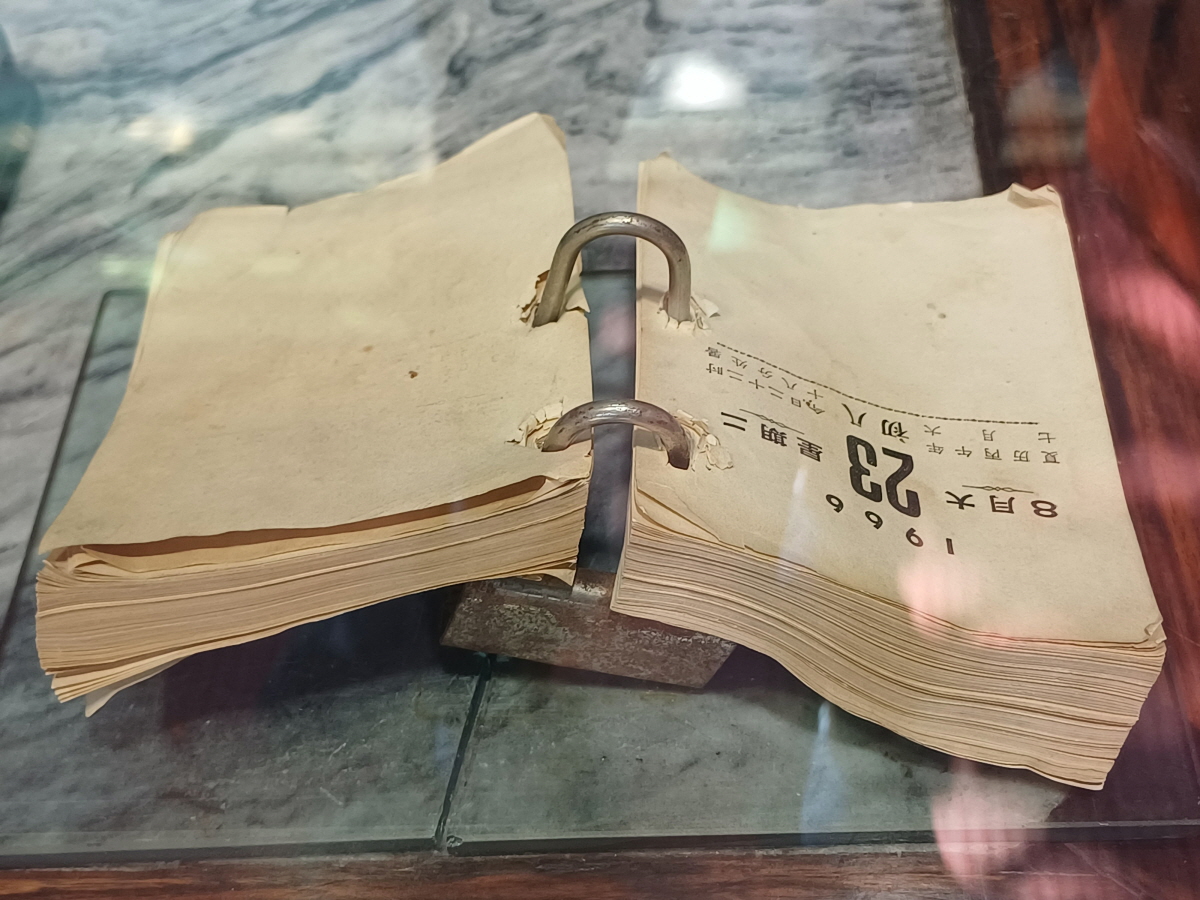 오래된 달력이 보였는데, 달력은 라오서 사망일인 1966년 8월 23일에 멈춰 있었다.