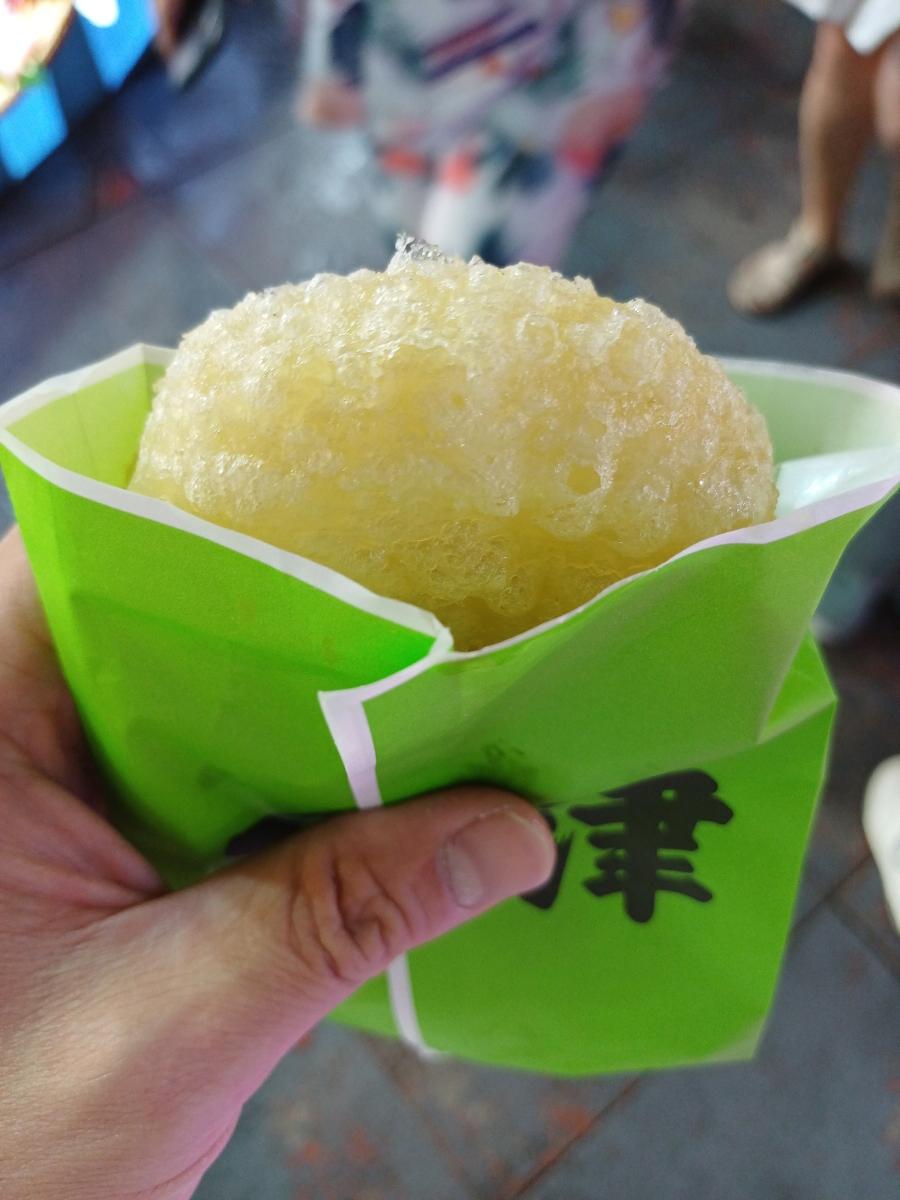 정말 사람도 많고 음식들도 많았는데, 딱히 먹고 싶은 음식들은 많지 않았다. 그래도 뭐 하나는 먹어야지 하는 생각에 튀김떡(炸糕)을 하나 사 먹었다.