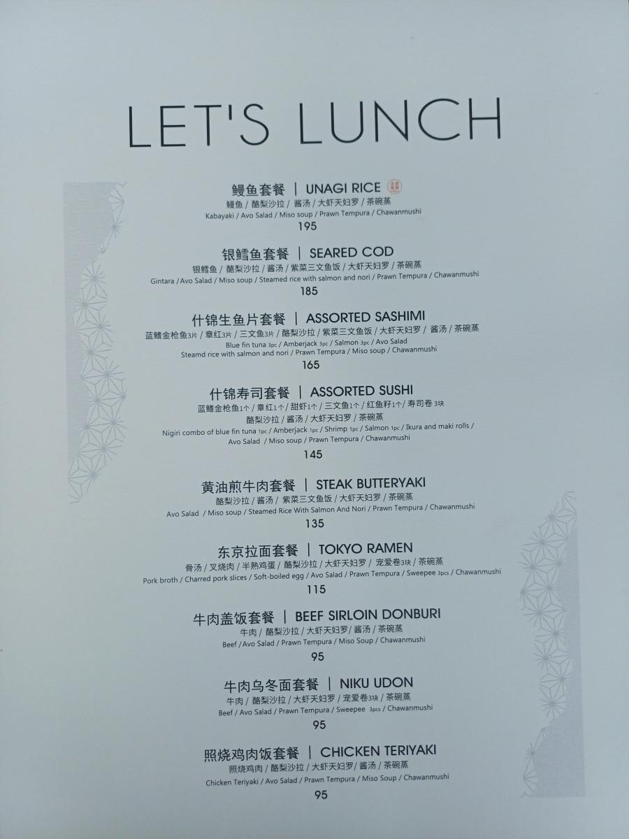 무엇을 먹을까 고민을 하다가, 런치메뉴가 있어서 이곳에서 장어덮밥 세트(鳗鱼套餐) 메뉴와, 모둠회 세트(什锦生鱼片套餐) 메뉴를 선택했다.