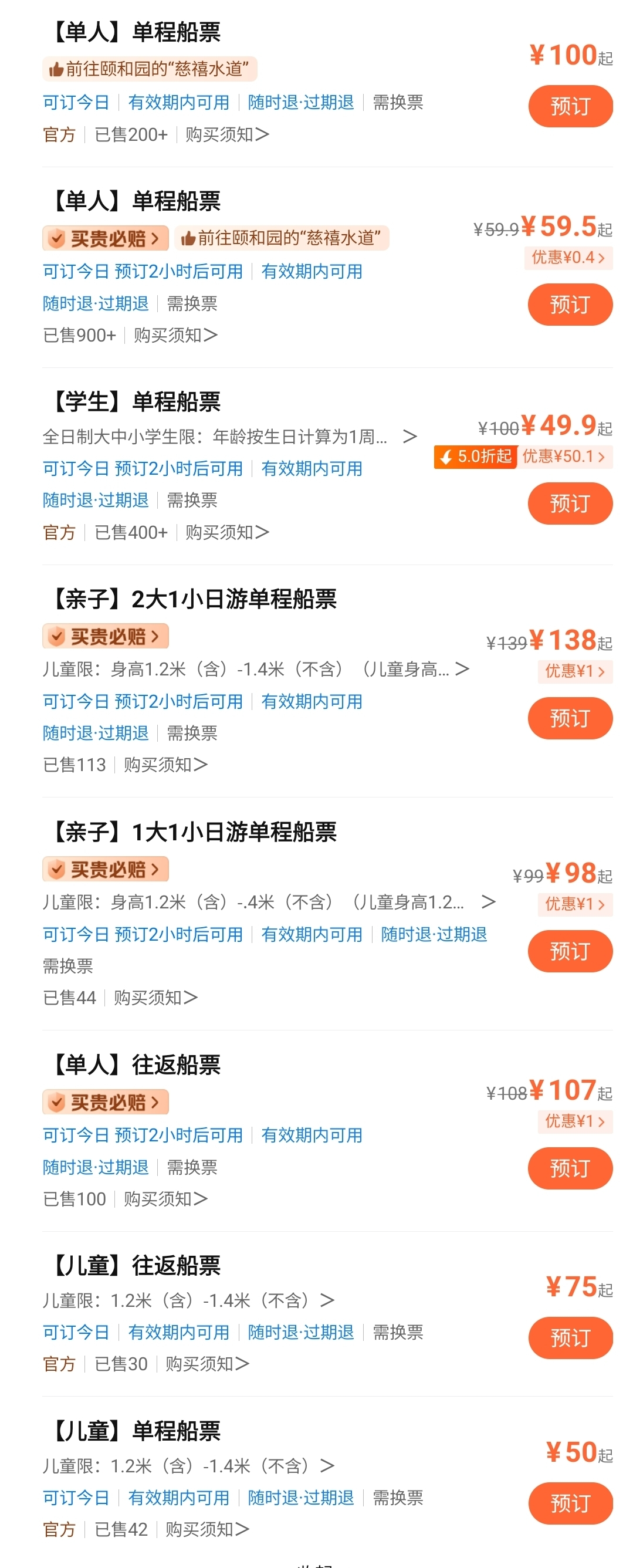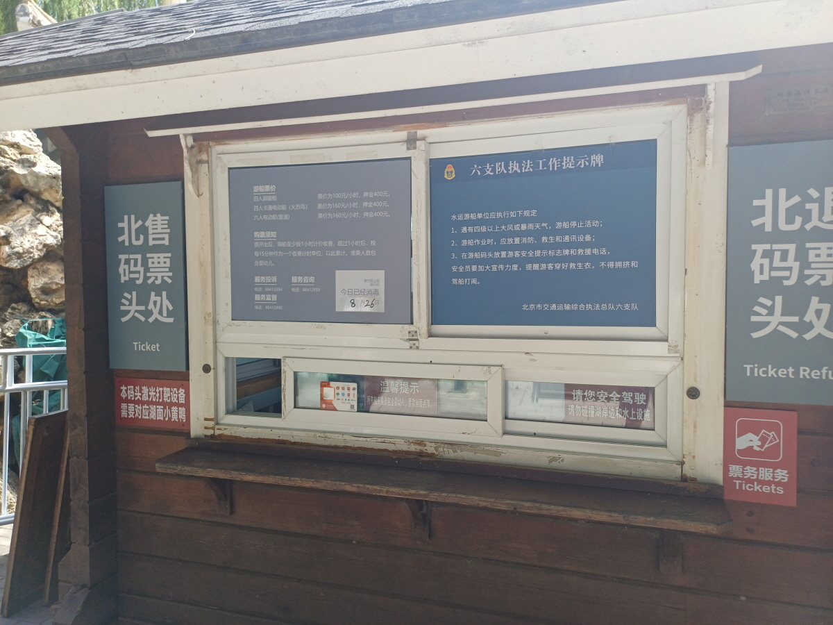 이곳에서는 매일 10시부터 한 시간 간격으로 이화원으로 가는 배가 출발하는데, 따종디엔핑(大众点评)으로 티켓 구매 시 약 60위안 정도면 편도 티켓 구매가 가능하다.
